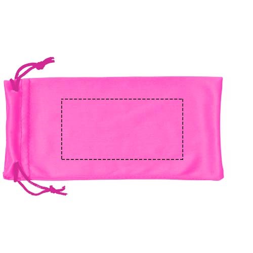 Mikrofaserbeutel mit Kordelzugverschluss zum sicheren Aufbewahren, Tragen und Reinigen Ihrer Sonnenbrille. Die große Farbauswahl und die große Dekorationsfläche machen es zu einem perfekten Geschenk zur Ergänzung Ihrer Sonnenbrille.