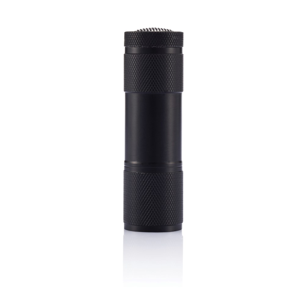 Eloxierte Aluminiumtaschenlampe mit 9 weißen LED's. Batterien inklusive.