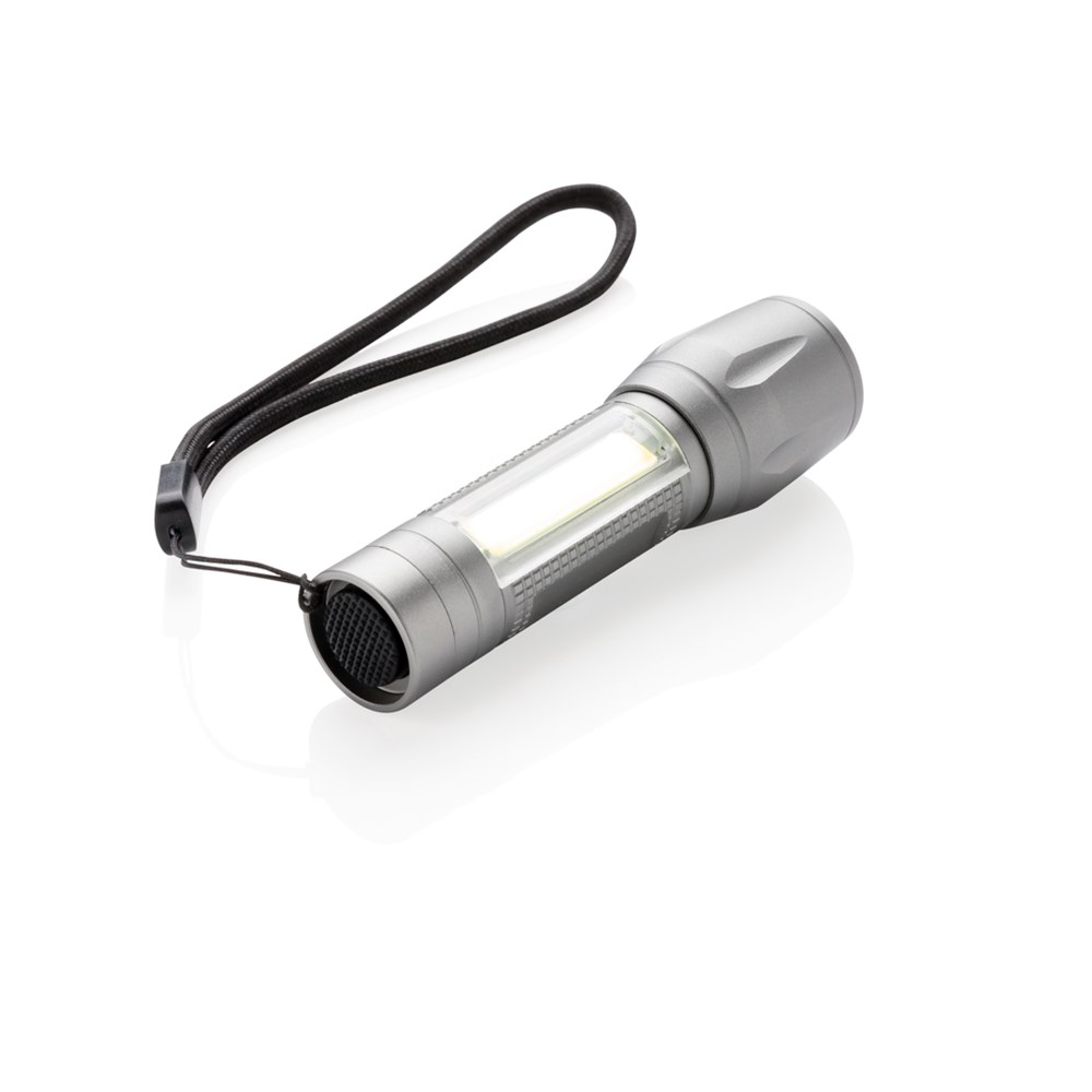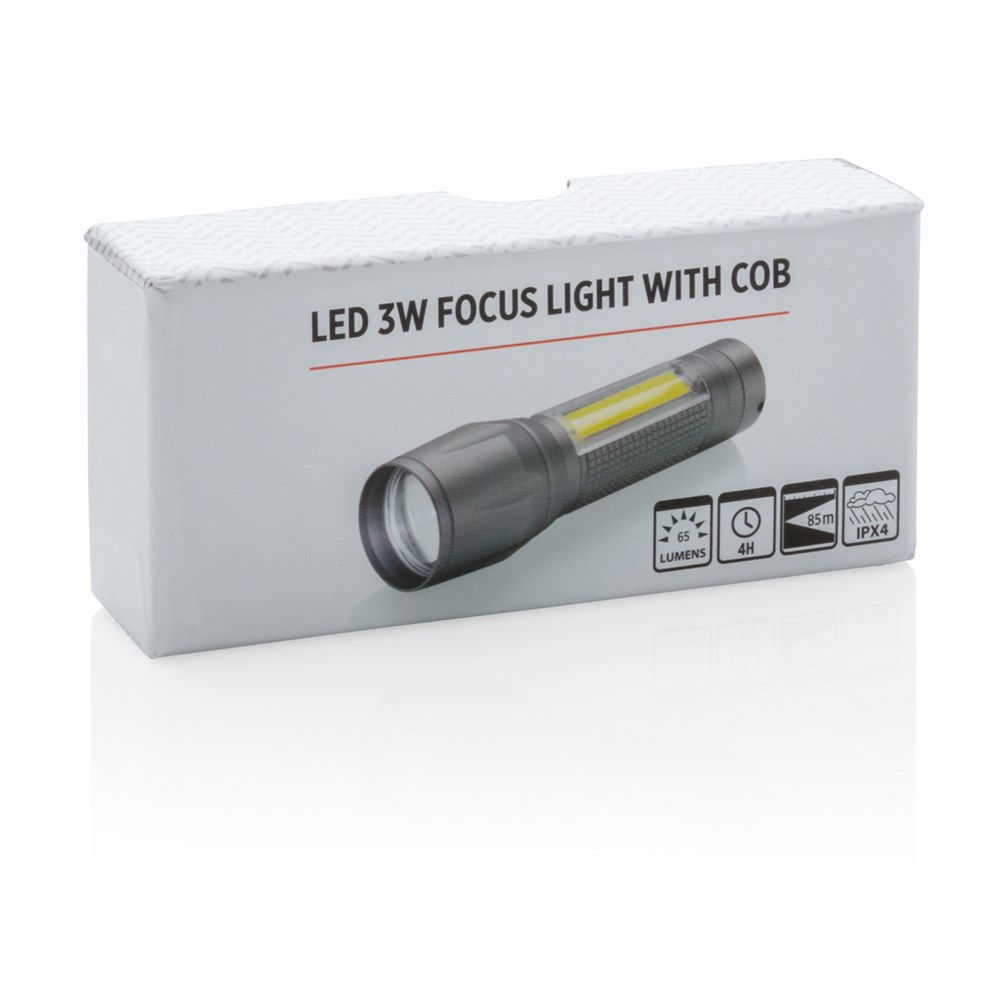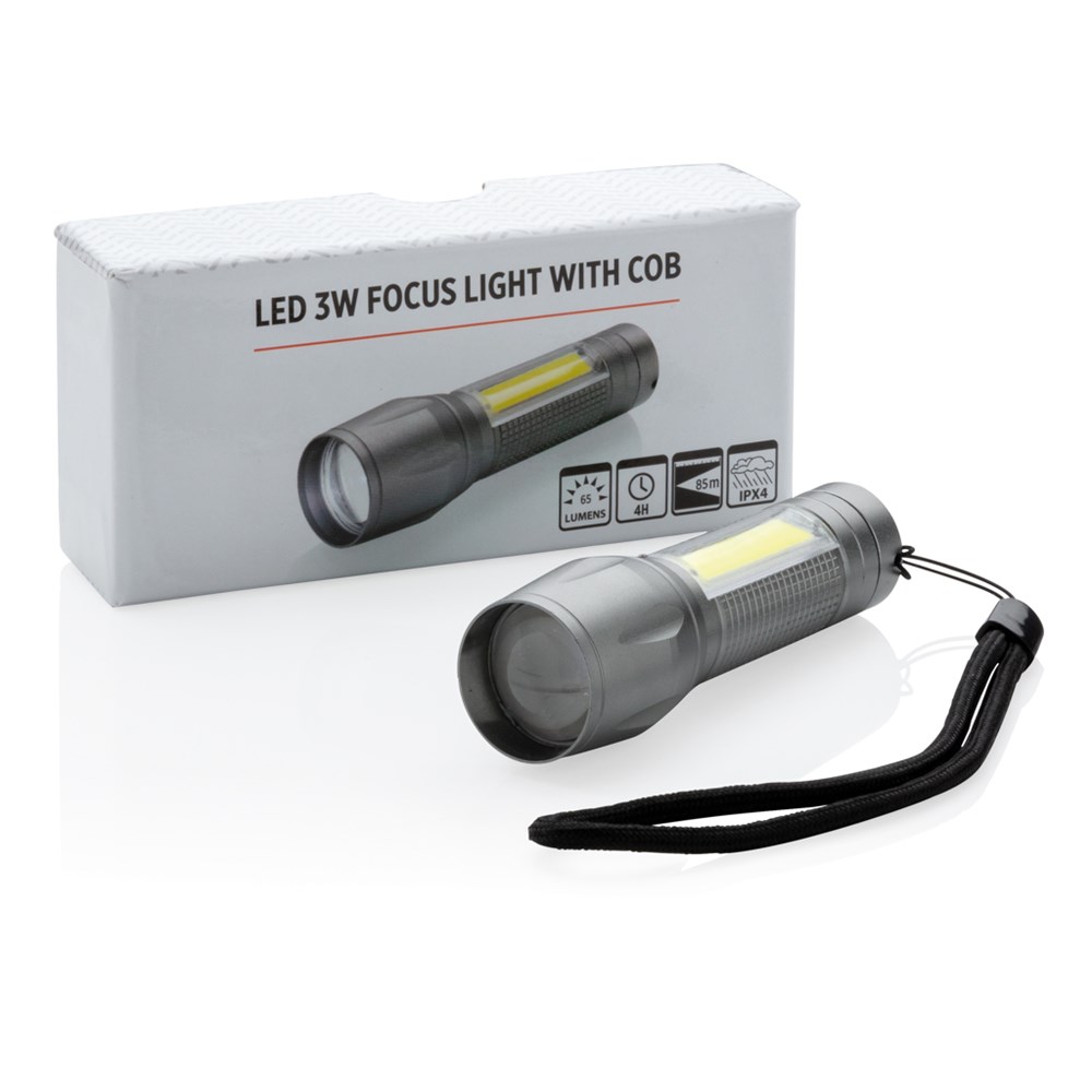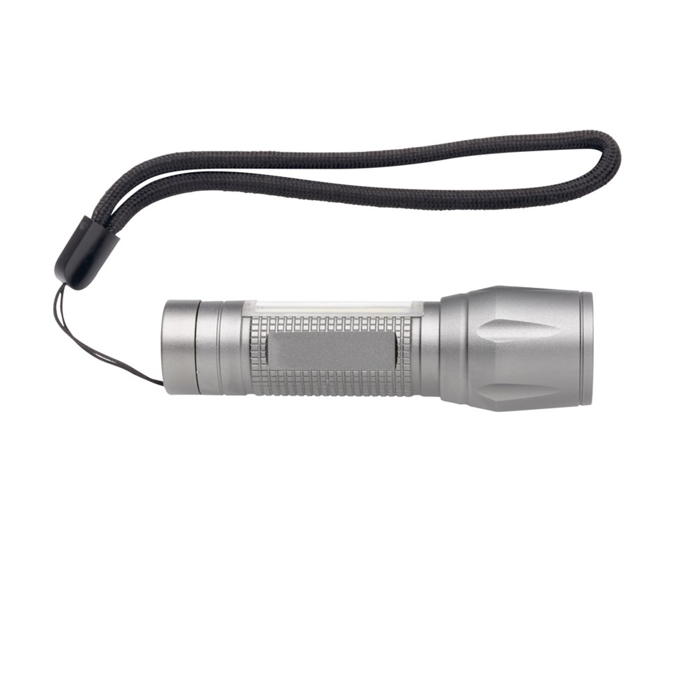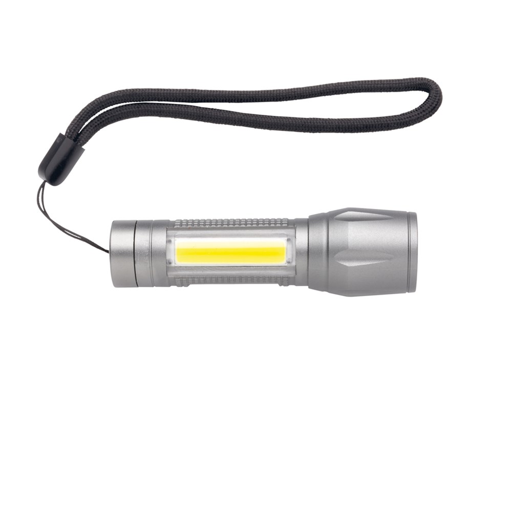 Im Taschenformat haben Sie nun eine LED und COB Leuchte mit einem Lichtstrahl von bis zu 85m. Das 3W LED Licht erzeugt 65 Lumen, die COB Leuchte 37 Lumen. Mit Zoomfunktion und 3 Lichtmodi: hell, 50% und blinkend. Wird inkl. Batterien geliefert.