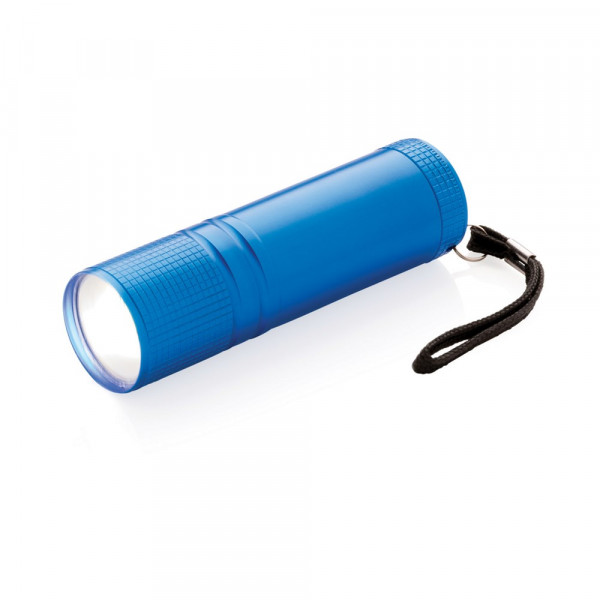 Superhelle COB-Leuchte im Taschenformat. COB ist heller ist das althergebrachte LED und benötigt dabei noch weniger Energie - kann somit bis zu 30% länger leuchten. Aluminiumgehäuse mit Trageriemen. Inkl. 3xAAA-Batterien
