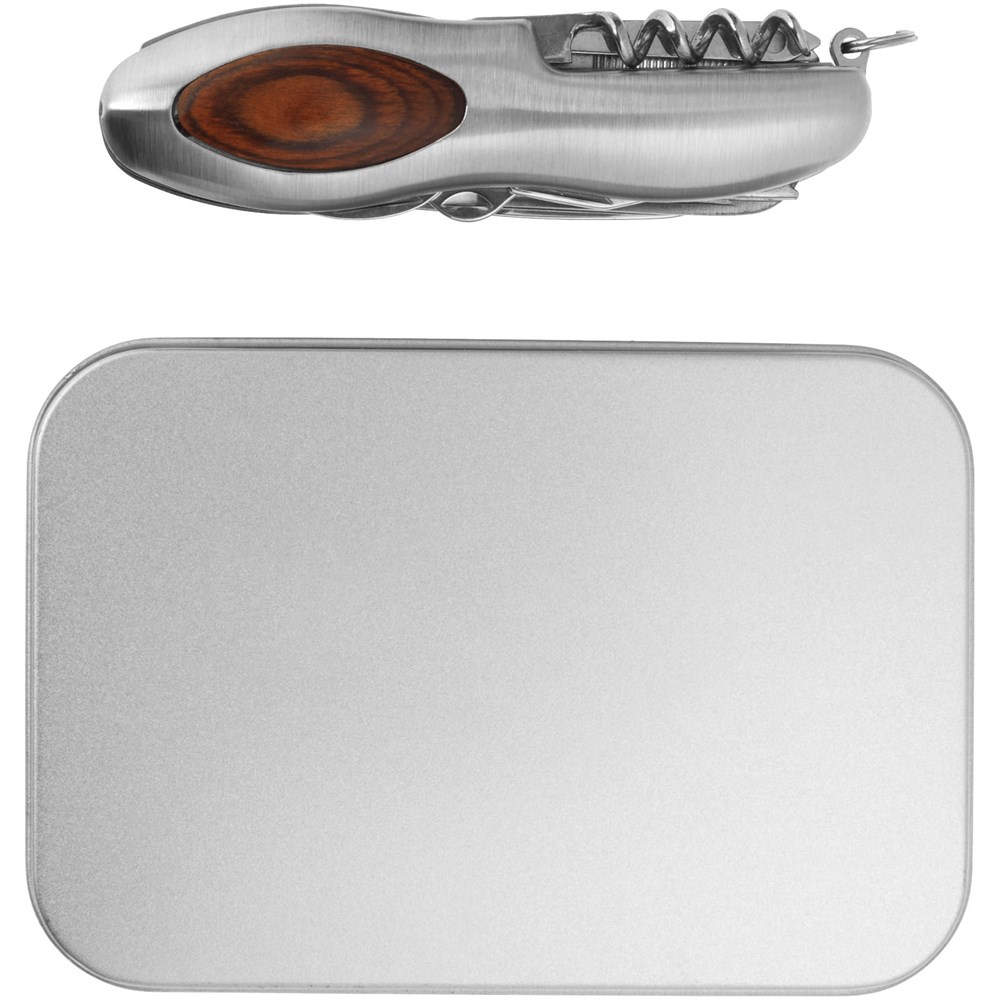 15 teiliges Taschenmesser mit Holzapplikation. Mit Geschenkkasten aus Metall. mehr