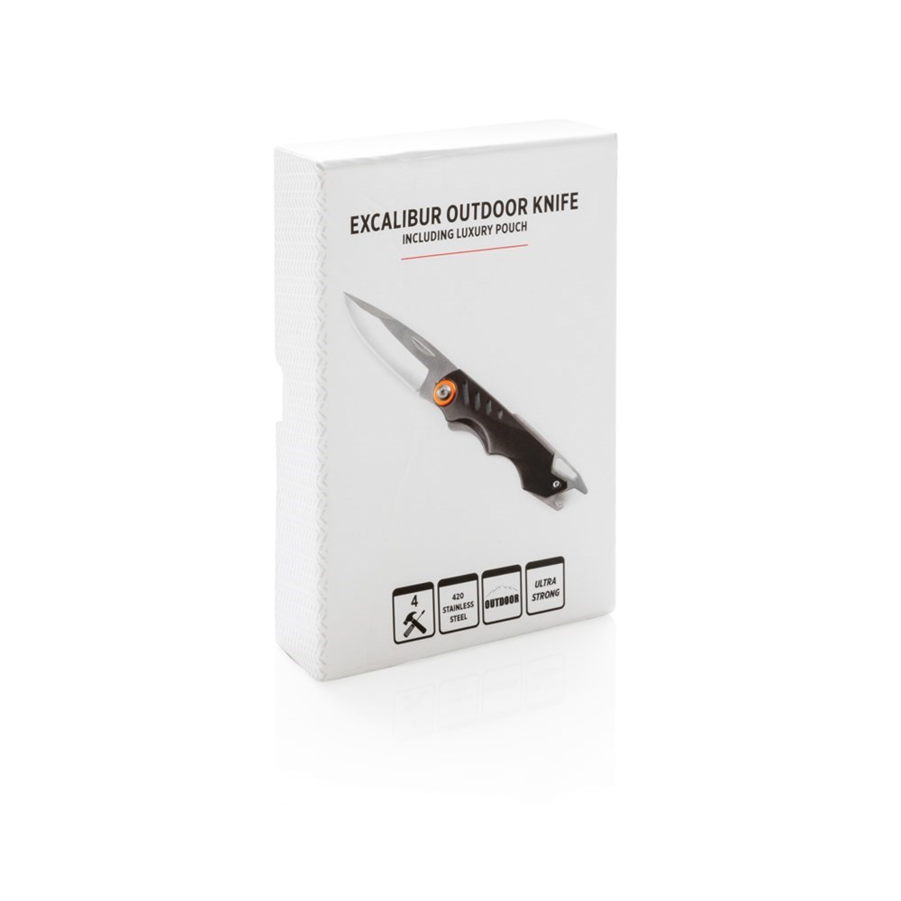 Massives Messer im 1680D Etui sowie Geschenkbox verpackt. Aluminiumgehäuse, die Tools aus Edelstahl. Mit Gürtelclip und Flaschenöffner.