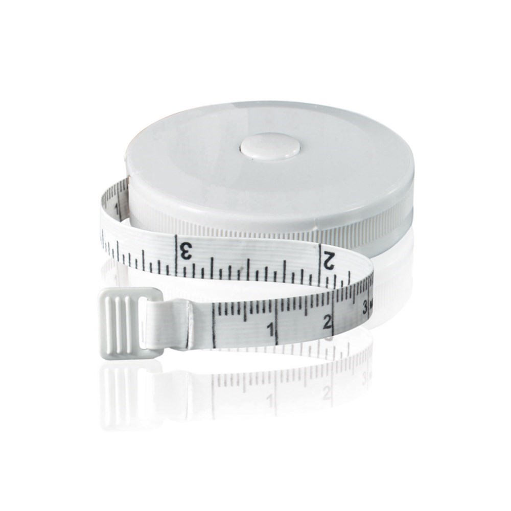 1,5m/60inch Fiberglasmaßband in Kunststoffgehäuse mit Rückzugknopf. Für Fitness und Fashion.