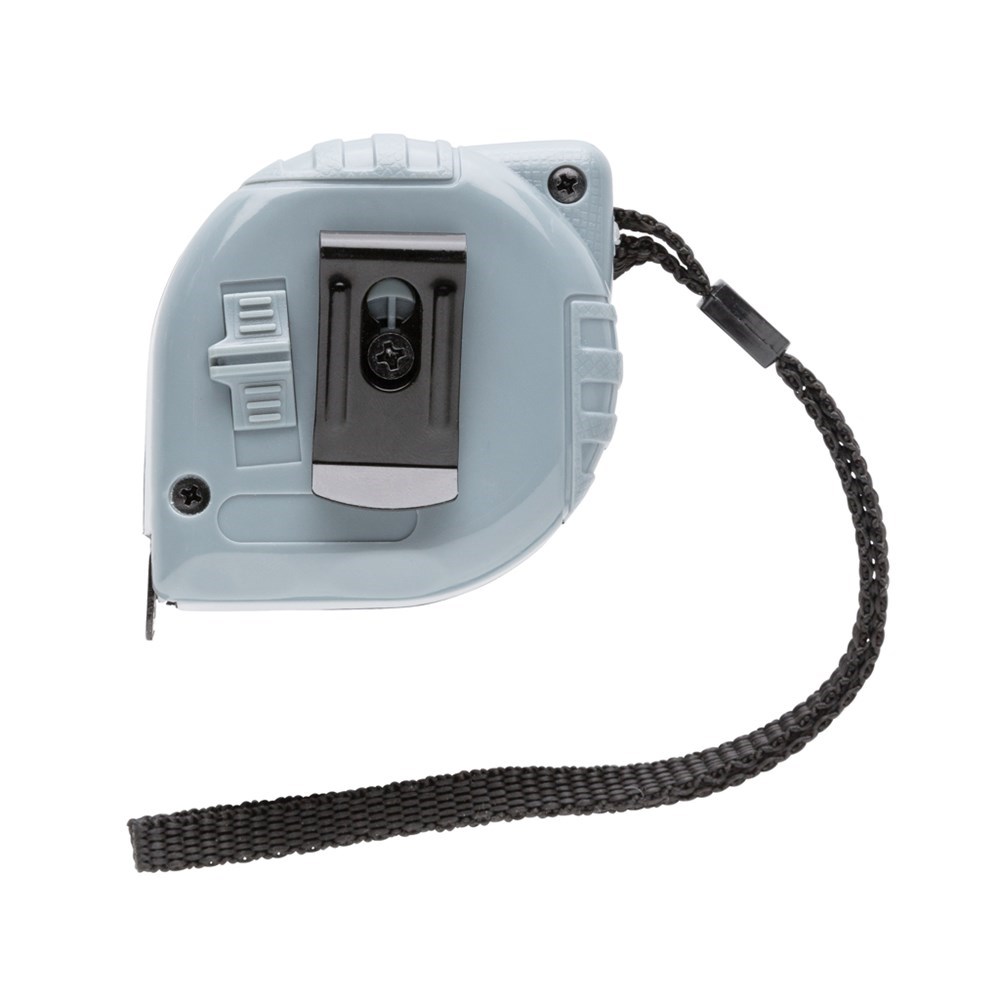 Compact Maßband 5 Meter / 19 mm Band. Das Gehäuse ist ca. 30% kleiner als die meisten anderen 5 Meter-Bänder. Daher ist dieses Maßband perfekt für unterwegs geeignet. Das Maßband besitzt eine Pause-Taste und eine Stopp-Taste. Die Pause-Taste ist perfekt positioniert, um den Bandfluss mit dem Daumen zu steuern (rechtshändige Verwendung). Mit Gürtelclip und Handschlaufe. ABS-Gehäuse mit Stahlplatte.