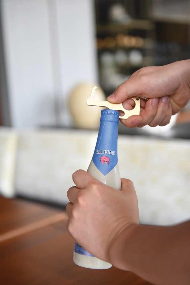 Dieser Zero-Contact Schlüsselanhänger aus Messing ( 62% Kupfer % 38% Zink) hilft Ihnen dabei weniger Oberflächen zu berühren. Wie z.B. Türklinken, Aufzugsknöpfe, Geldautomaten oder die Tasten von Kartenzahlgeräten. Denn Kupfer hat eine antimikrobielle Oberfläche auf der 99% aller Bakterien nicht überleben können. Haben Sie also diesen Schlüsselanhänger mit Kapselheber immer dabei und Sie können sich sicher sein, dass Sie nur noch so wenig Oberflächen wie wirklich nötig berühren.