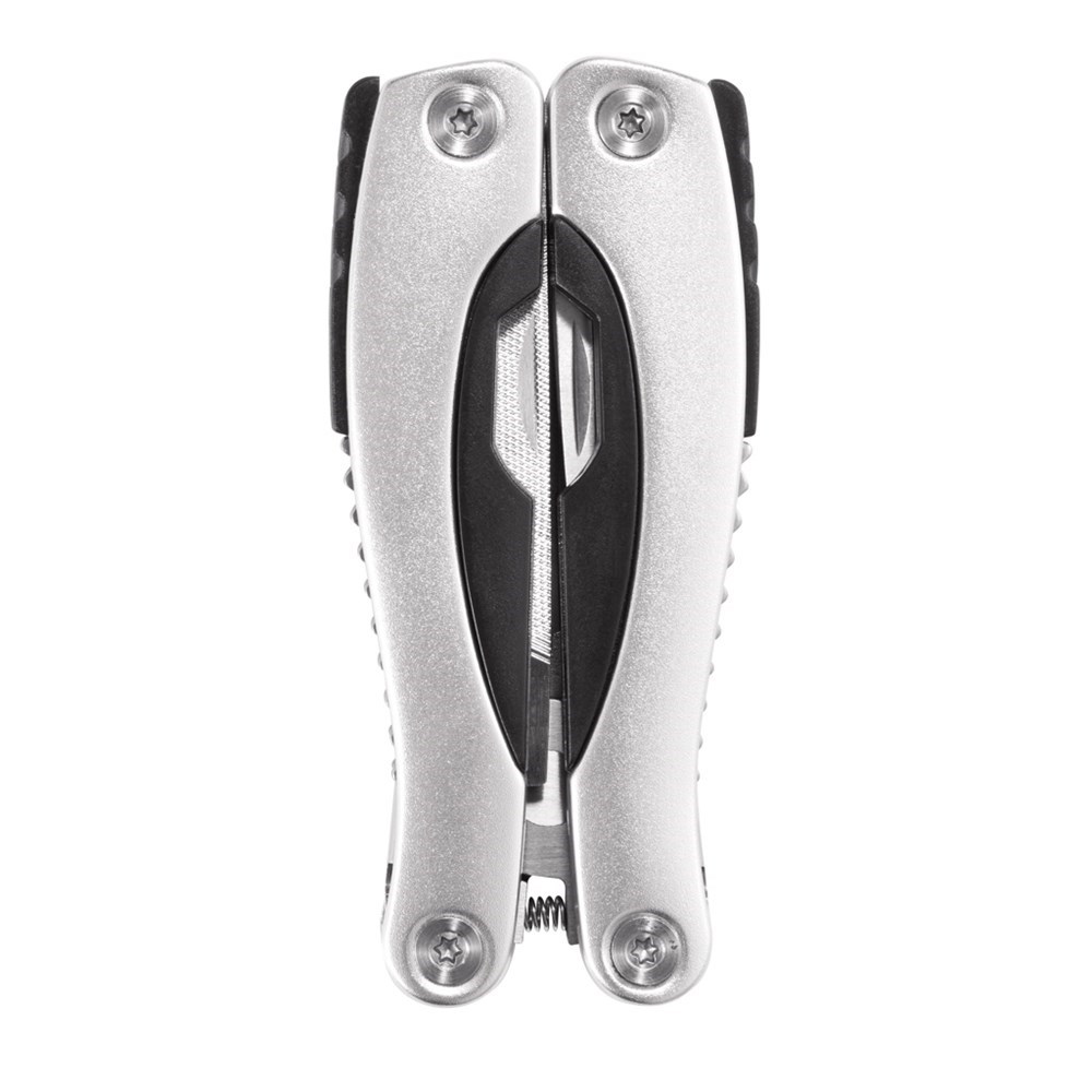 Aluminium Multitool, 14 Funktionen, Griff mit schwarzen Farbakzenten, konfektioniert im 600D Etui.