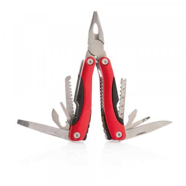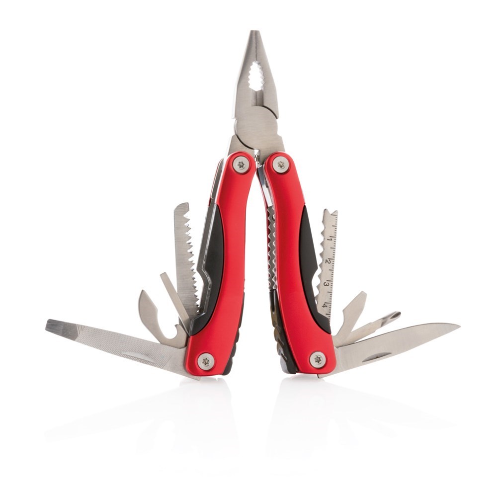Aluminium Multitool, 14 Funktionen, Griff mit schwarzen Farbakzenten, konfektioniert im 600D Etui.