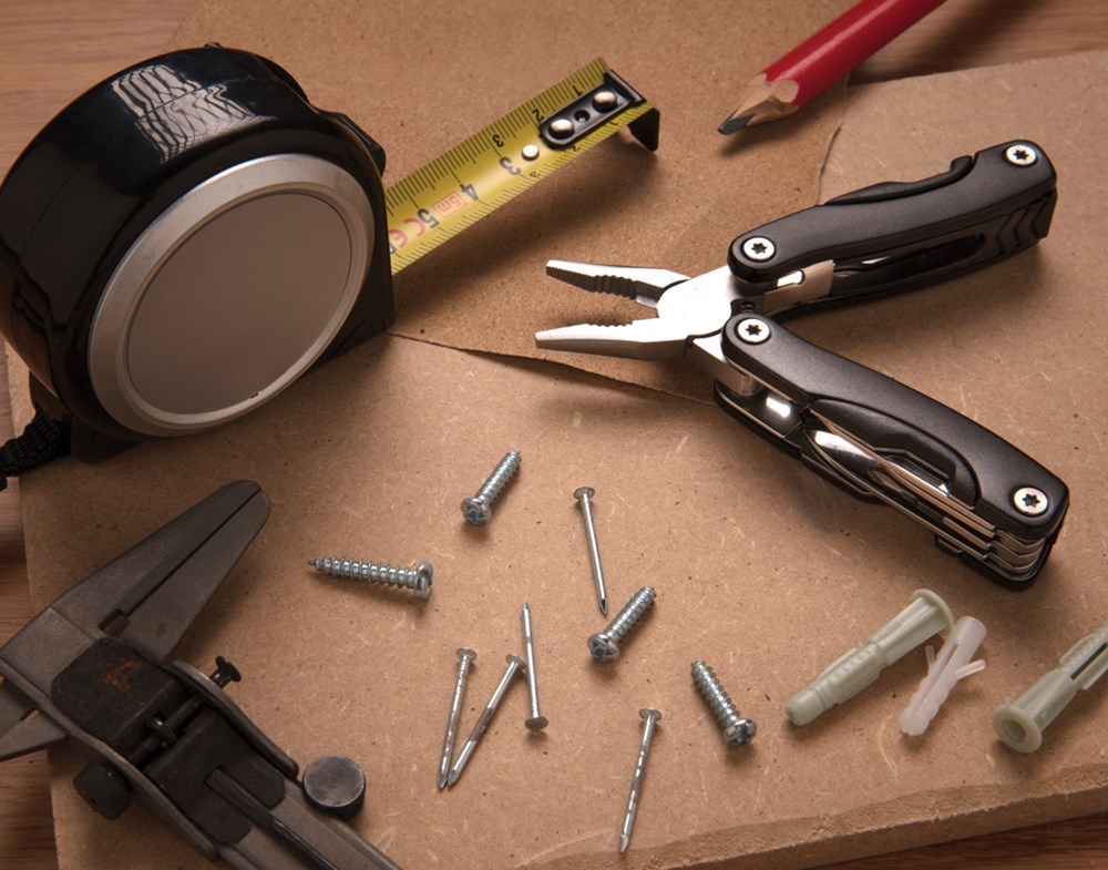 13 Funktionen, ein Multifunktionswerkzeug aus Edelstahl und mit Aluminium überzogenem Griff. Inklusive schwarzer Tasche.