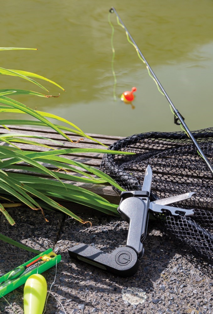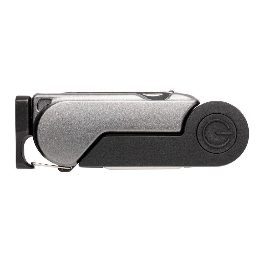 High-End Aluminium Multitool mit 8 Funktionen: COB-Licht, Messer, Flaschenöffner, Dosenöffner, Nagelfeile, Fingernagelreiniger sowie einem Clip und Magnet. In Geschenkverkackung verpackt sowie inkl. Batterien.