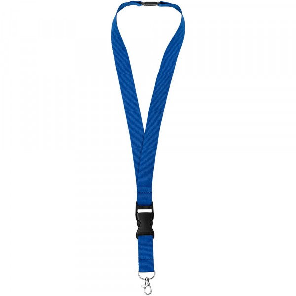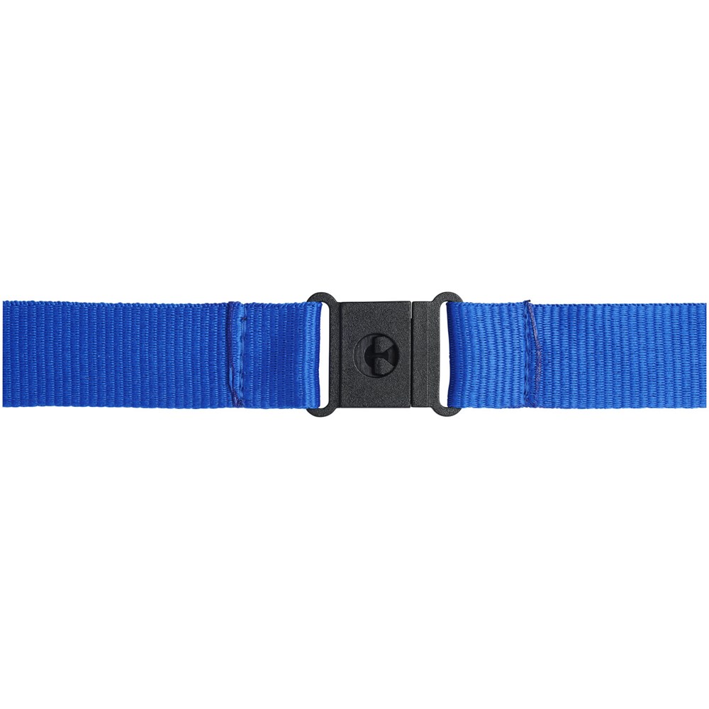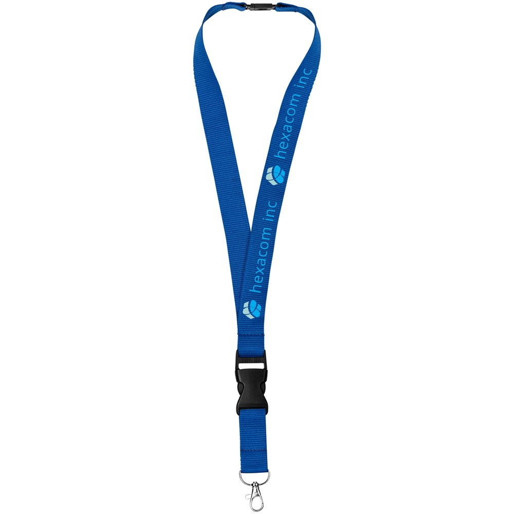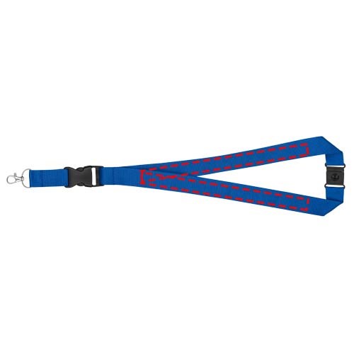Schlüsselband für Namensschilder, Ausweise oder Schlüssel. Einfach abnehmbare Schnalle und Sollbruch-Verschluss beseitigt Strangulierungsgefahren. Setup-Kosten für die zweite Position entfällt, wenn auf beiden Seiten eine Werbeanbringung mit dem selben Bildmaterial erfolgt. Druckkosten pro Position fallen dennoch an.