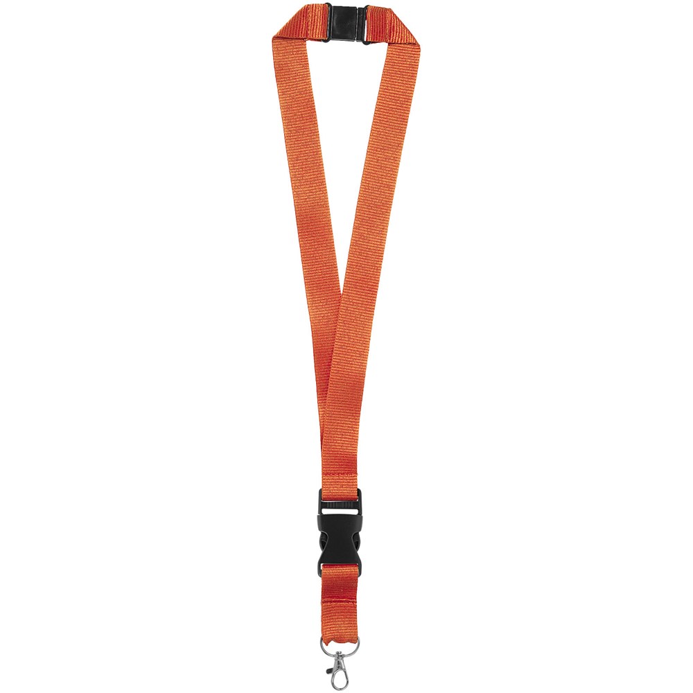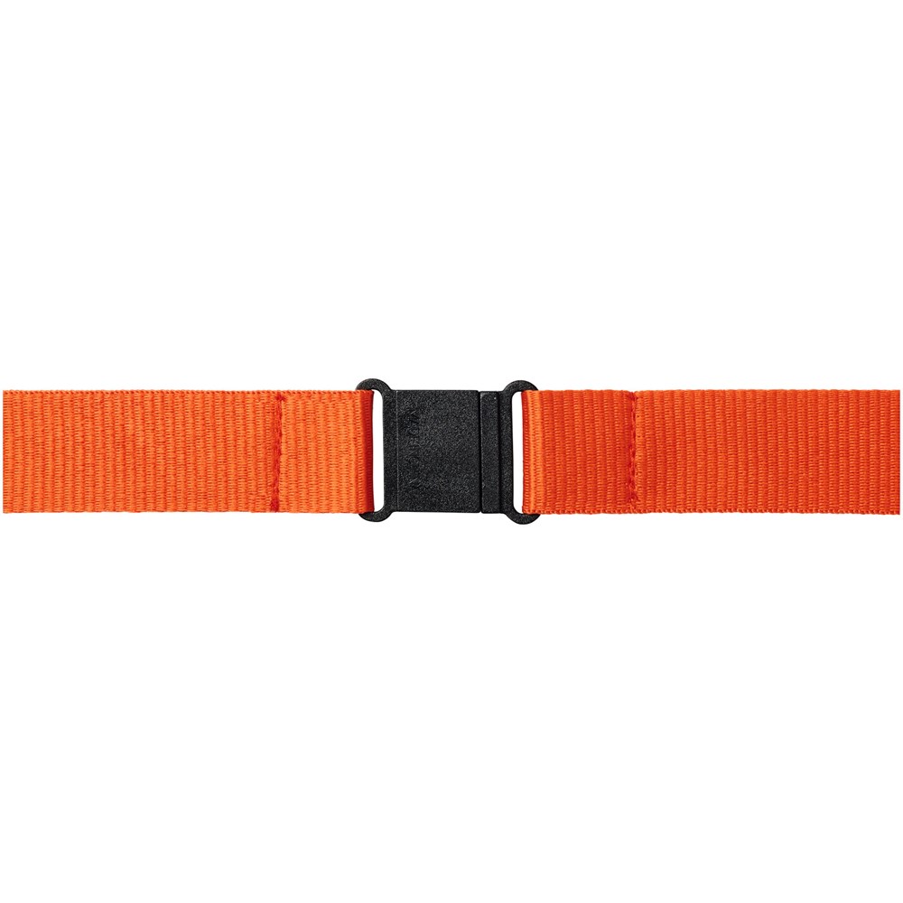 Schlüsselband für Namensschilder, Ausweise oder Schlüssel. Einfach abnehmbare Schnalle und Sollbruch-Verschluss beseitigt Strangulierungsgefahren. Setup-Kosten für die zweite Position entfällt, wenn auf beiden Seiten eine Werbeanbringung mit dem selben Bildmaterial erfolgt. Druckkosten pro Position fallen dennoch an.
