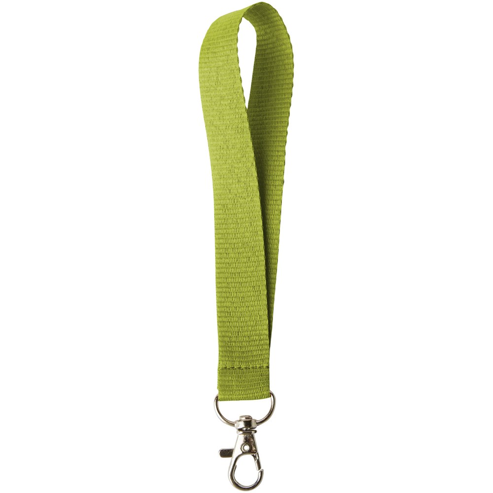 Mini-Lanyard, das einen Metallhaken für das Aufnehmen eines Namensschilds, eines Ausweises oder von Schlüsseln enthält.
