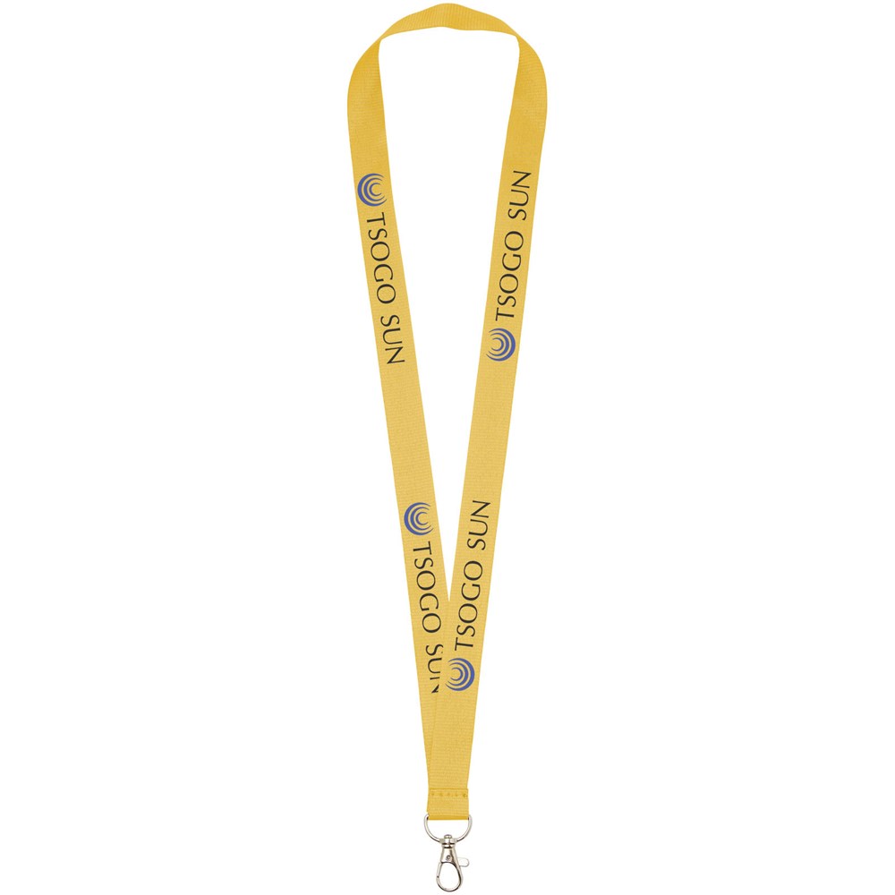 Trageband zum Einstiegspreis in einer breiten Farbpalette, das ein großartiges Preis-Leistungsverhältnis und beeindruckende Logogrößen bietet. Hochwertiger ovaler Haken, ideal für das Befestigen von Namensschildern, Ausweisen oder Schlüsseln. Einrichtungsgebühr für zweite Position entfällt, wenn auf beiden Seiten eine Werbeanbringung mit demselben Bildmaterial erfolgt.
