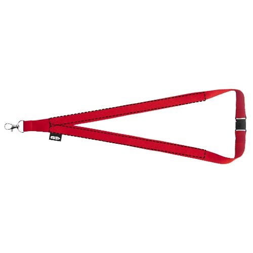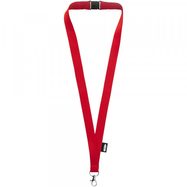 Schlüsselband aus recyceltem PET Kunststoff mit abnehmbarem Verschluss. Hochwertiger ovaler Haken mit Hummerclip, der sich ideal für Namensschilder, Ausweise oder Schlüssel eignet.