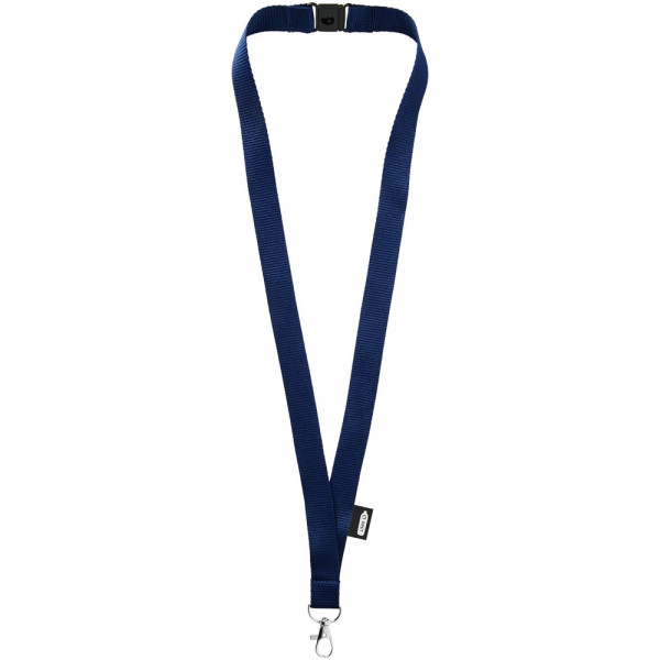 Schlüsselband aus recyceltem PET Kunststoff mit abnehmbarem Verschluss. Hochwertiger ovaler Haken mit Hummerclip, der sich ideal für Namensschilder, Ausweise oder Schlüssel eignet.