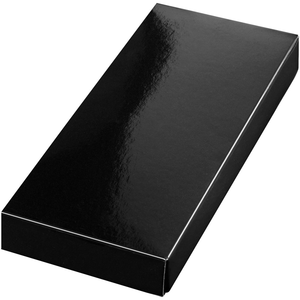 Versilberter Schlüsselanhänger im schwarzen Geschenkkarton.