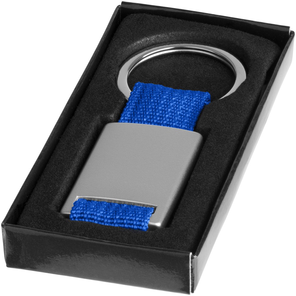Rechteckiger Schlüsselanhänger. Halten Sie Ihre Schlüssel mit diesem attraktiven, modernen Schlüsselanhänger zusammen. Aluminium mit farbigem Polyester Gewebe. Verpackt in einer schwarzen Geschenkverpackung.