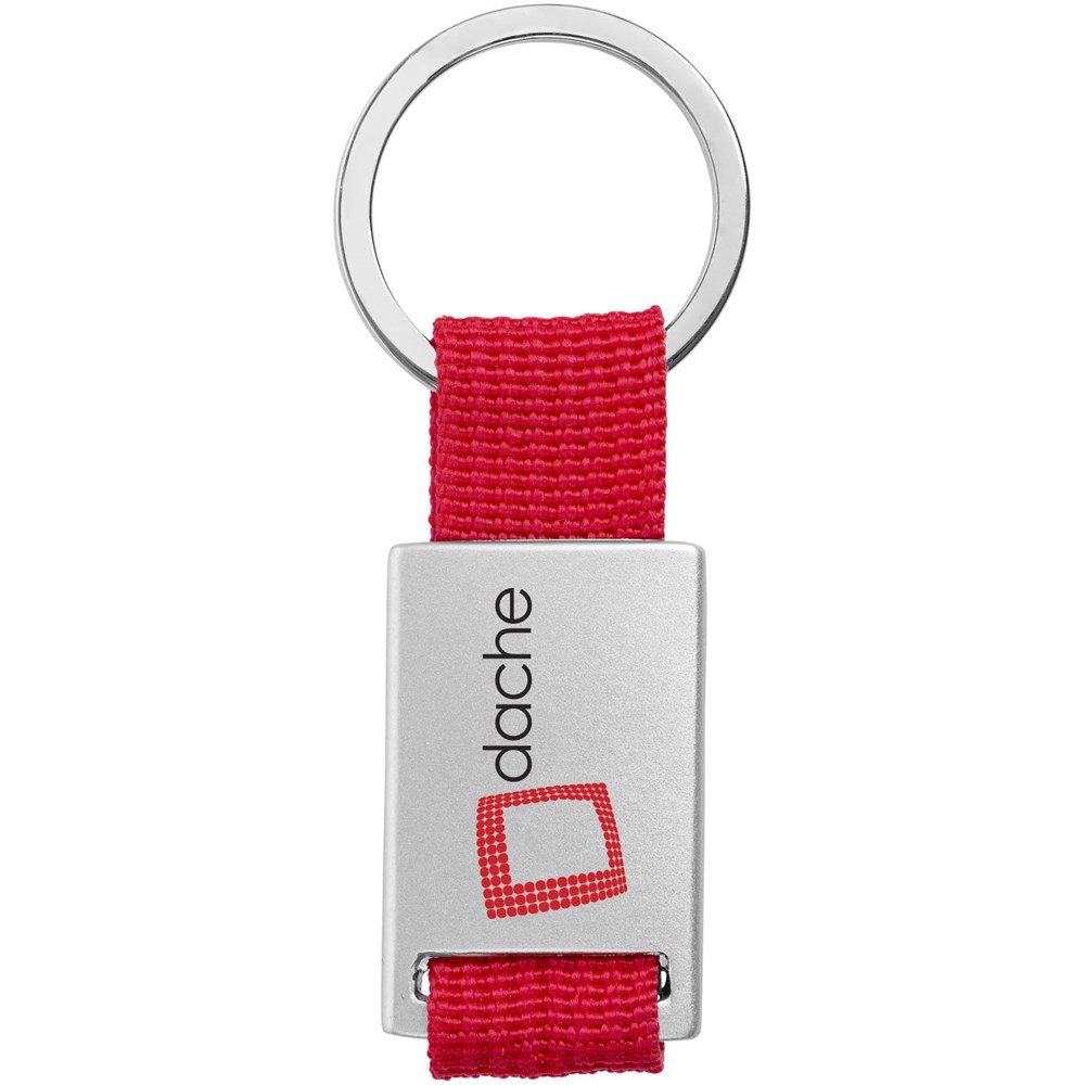 Rechteckiger Schlüsselanhänger. Halten Sie Ihre Schlüssel mit diesem attraktiven, modernen Schlüsselanhänger zusammen. Aluminium mit farbigem Polyester Gewebe. Verpackt in einer schwarzen Geschenkverpackung.