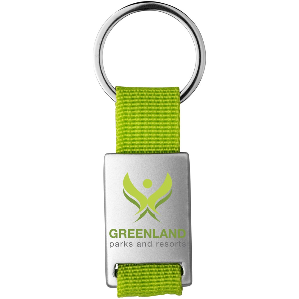 Rechteckiger Schlüsselanhänger. Halten Sie Ihre Schlüssel mit diesem attraktiven, modernen Schlüsselanhänger zusammen. Aluminium mit farbigem Polyester Gewebe. Verpackt in einer schwarzen Geschenkverpackung.