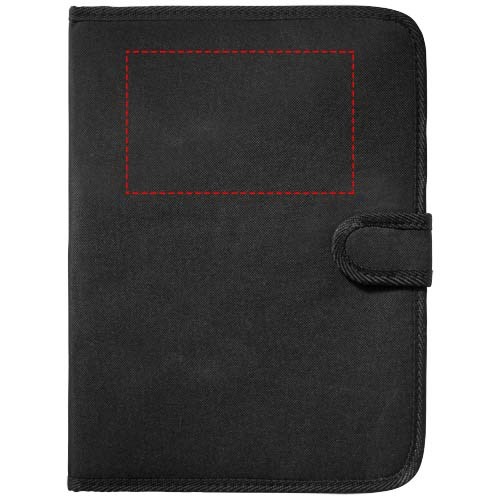 Mappe mit Klettverschluss, Stiftschlaufe, Dokumentenfach und Notizblock mit 20 Blatt, liniert.