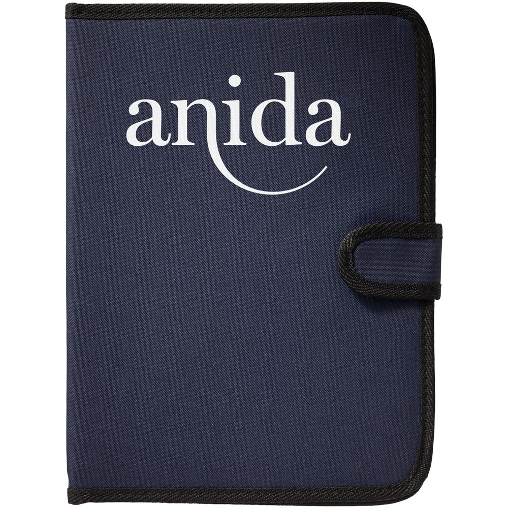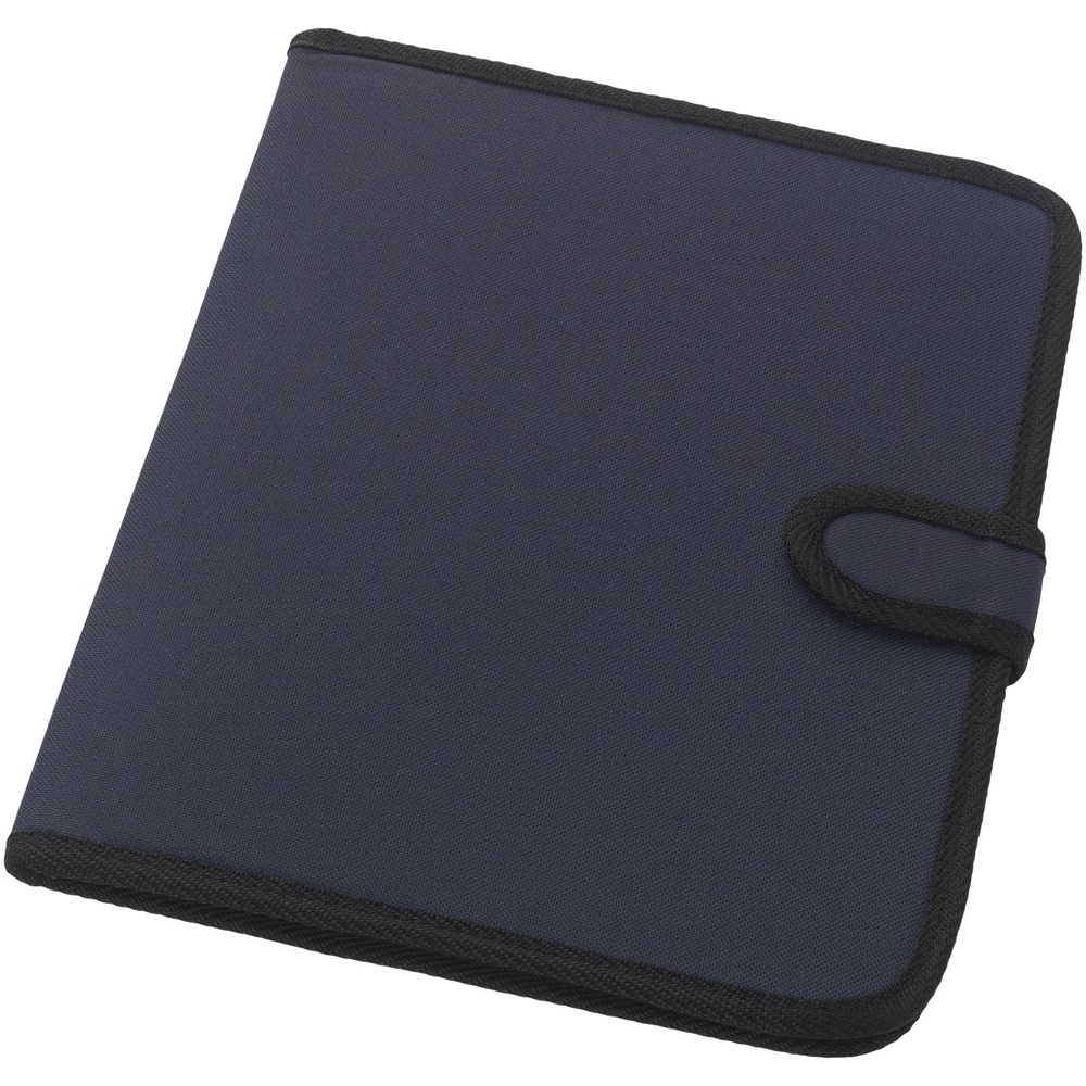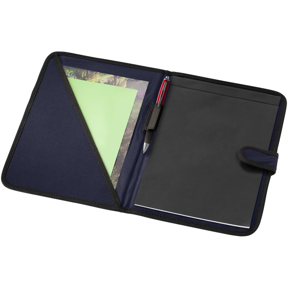 Mappe mit Klettverschluss, Stiftschlaufe, Dokumentenfach und Notizblock mit 20 Blatt, liniert.