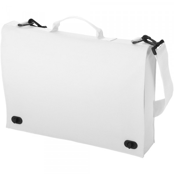 Konferenztasche mit Tragegriff, verstellbarer Schulterriemen, Schnallenverschluss und mehreren Dokumententaschen.