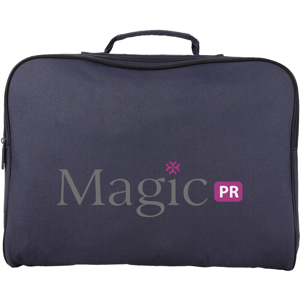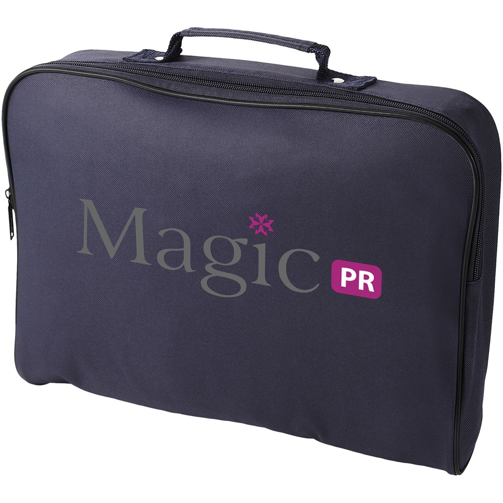 Seminartasche mit Hauptfach mit Reißverschluss. In die Tasche passen A4 Dokumente.