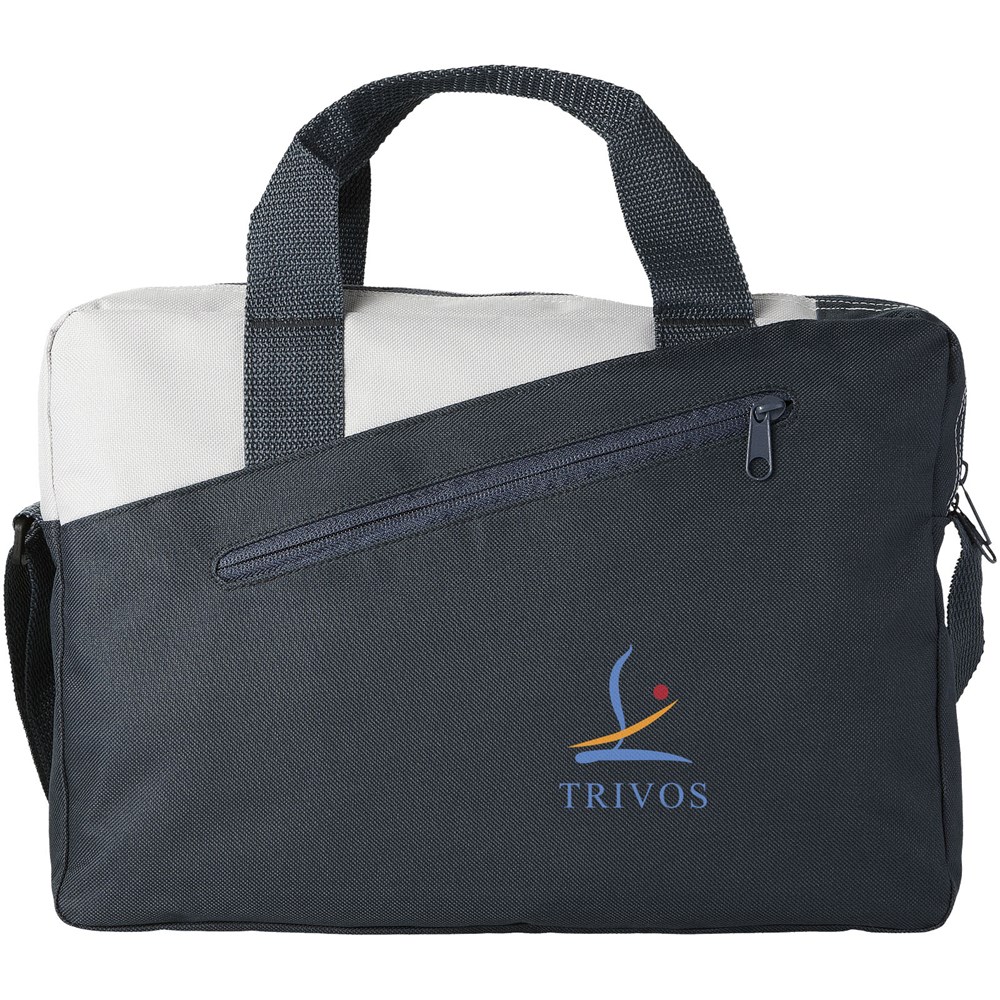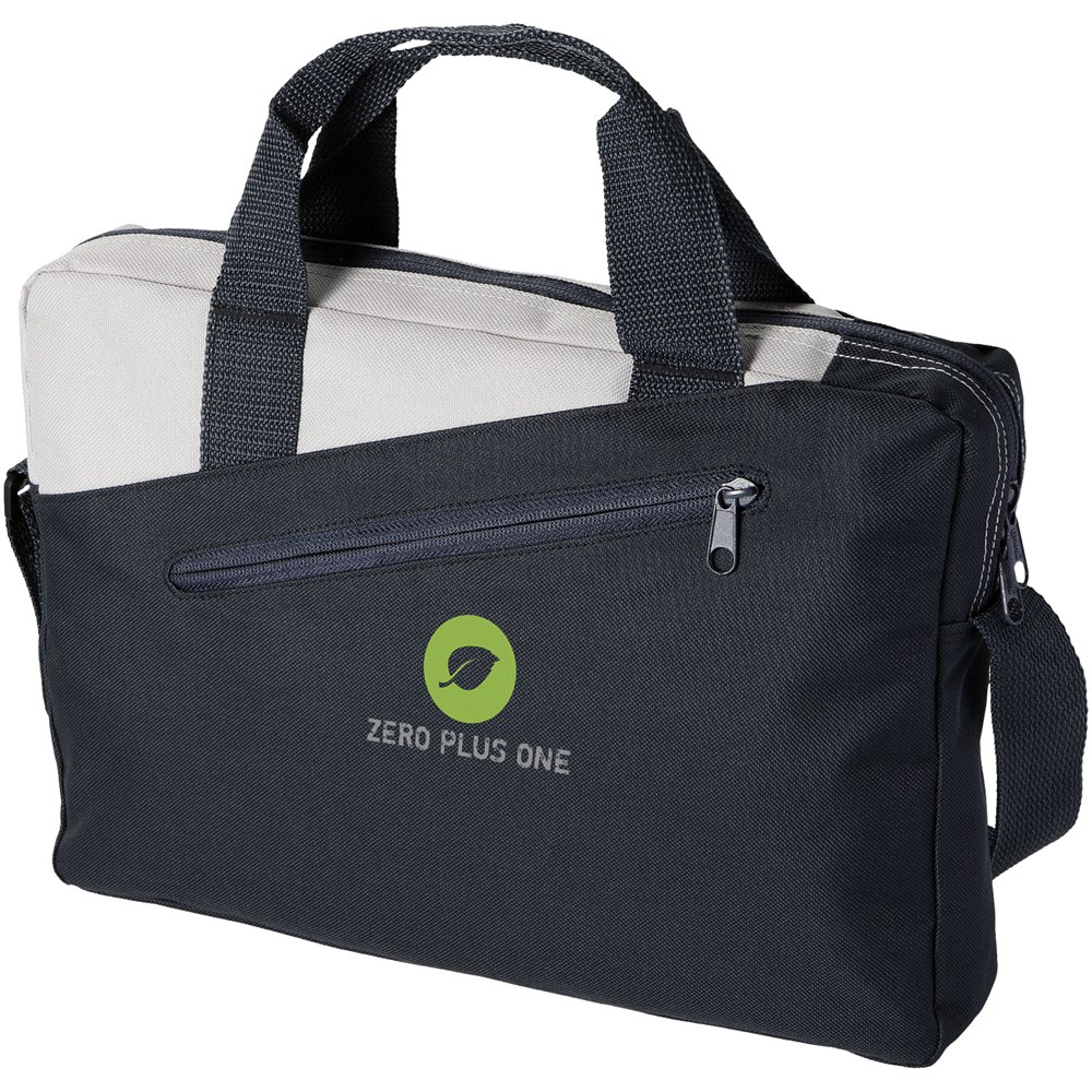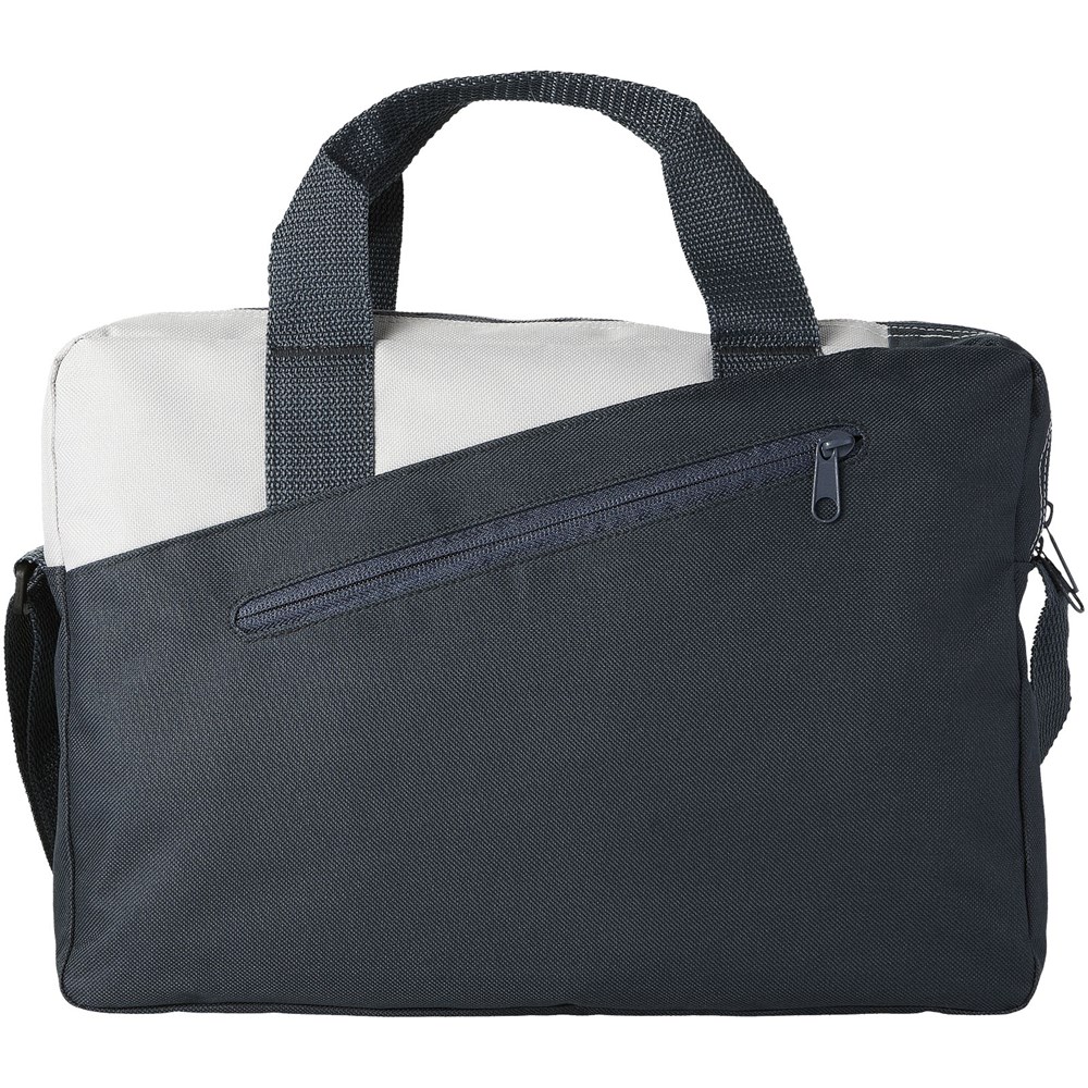 Aktentasche mit zwei Griffen mit Hauptfach mit Reißverschluss und Reißverschlusstasche vorne.