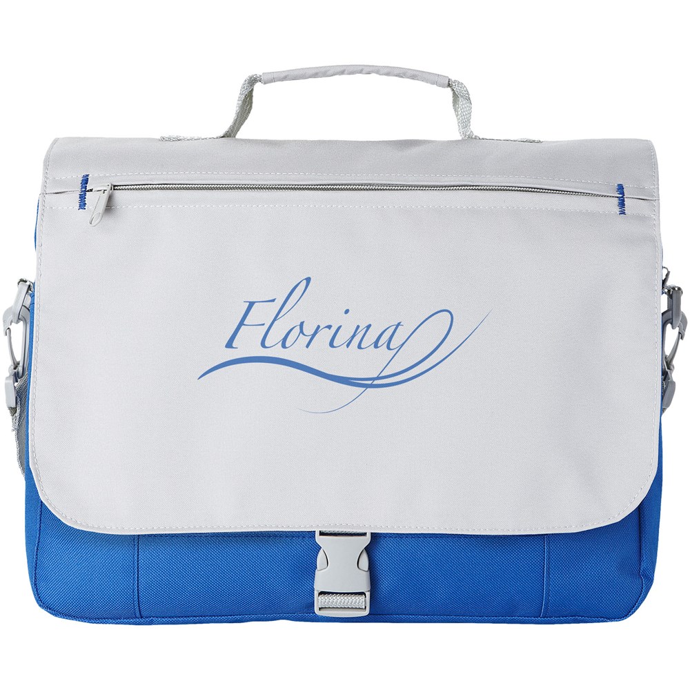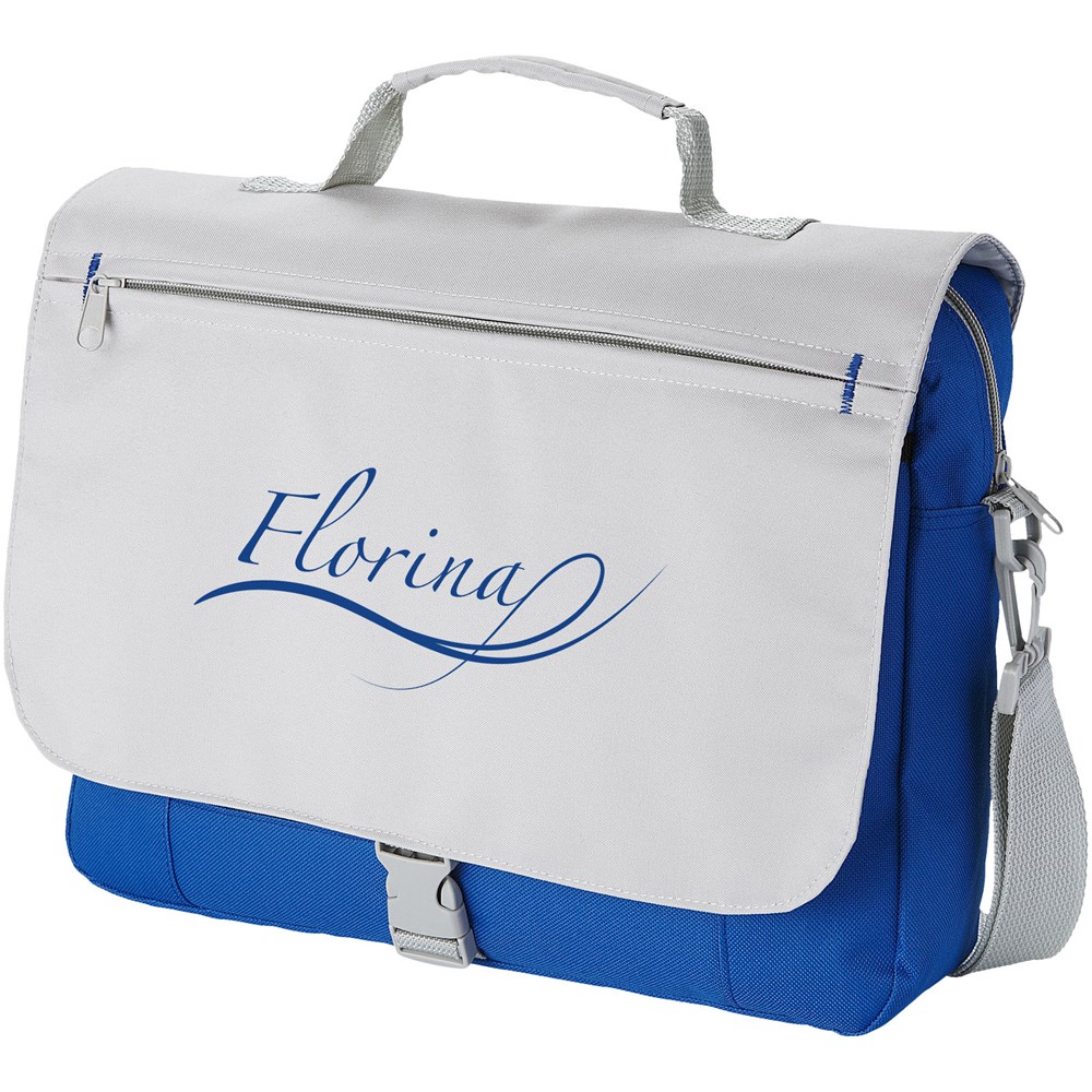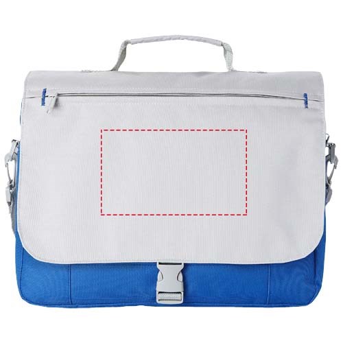 Schultertasche mit einstellbarem Schulterriemen, gepolstertem Griff, Reißverschlussfach vorne, Hauptfach mit Reißverschluss und Organisationsfach unter der Klappe.