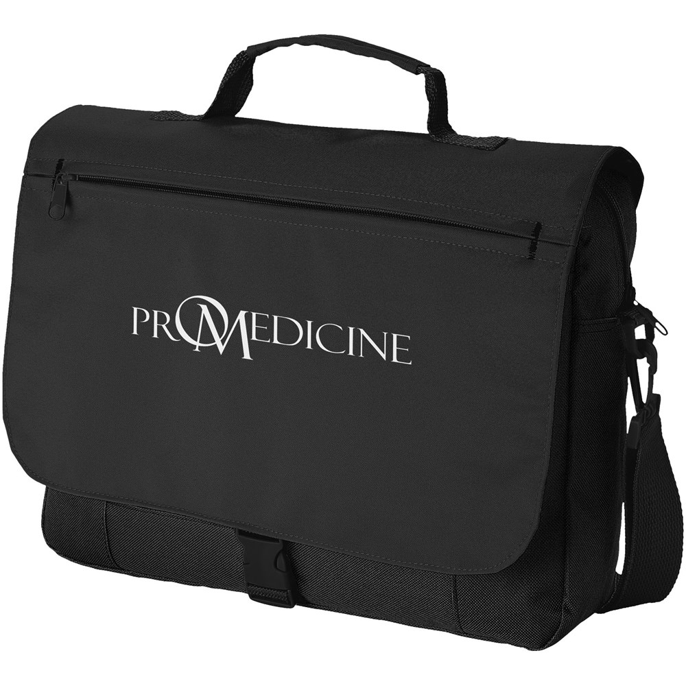 Schultertasche mit einstellbarem Schulterriemen, gepolstertem Griff, Reißverschlussfach vorne, Hauptfach mit Reißverschluss und Organisationsfach unter der Klappe.