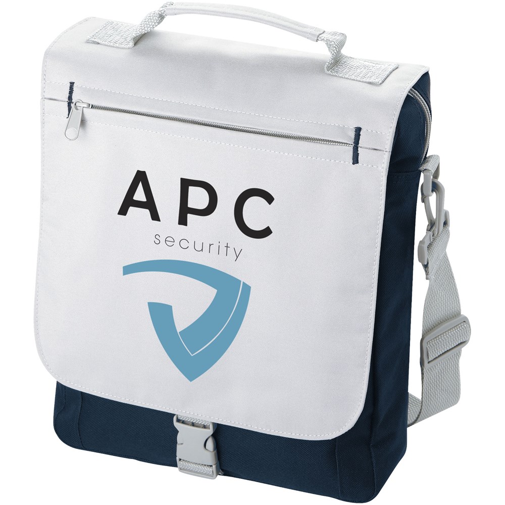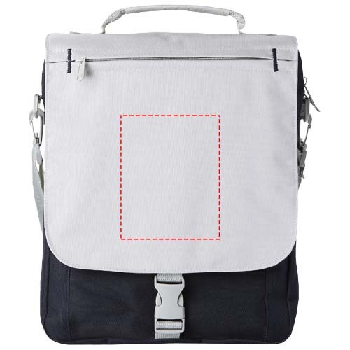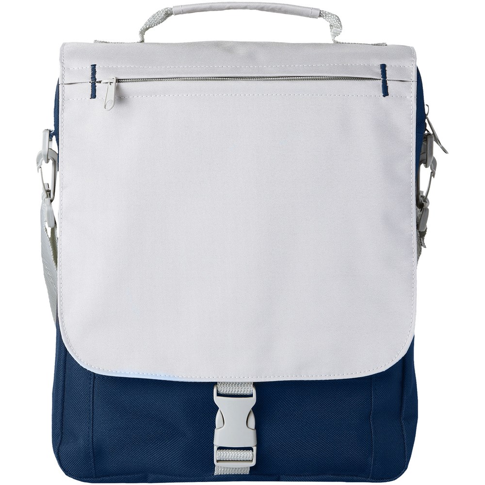 Schultertasche mit einstellbarem Schulterriemen, gepolstertem Griff, Reißverschlussfach vorne, Hauptfach mit Reißverschluss und Organisationsfach unter der Klappe.