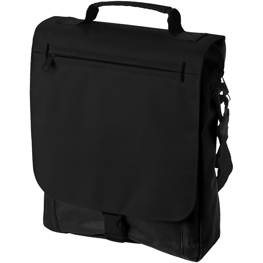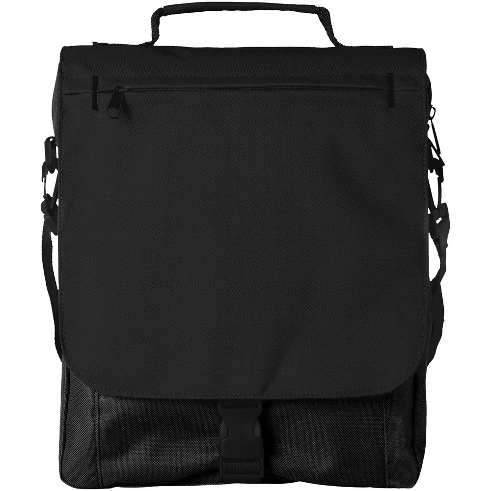 Schultertasche mit einstellbarem Schulterriemen, gepolstertem Griff, Reißverschlussfach vorne, Hauptfach mit Reißverschluss und Organisationsfach unter der Klappe.