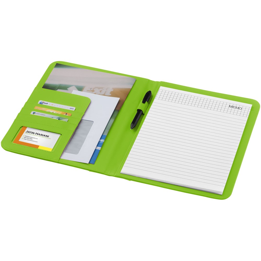 Mappe mit Stiftschlaufe, Dokumentenfächern und Notizblock mit 20 Blatt.