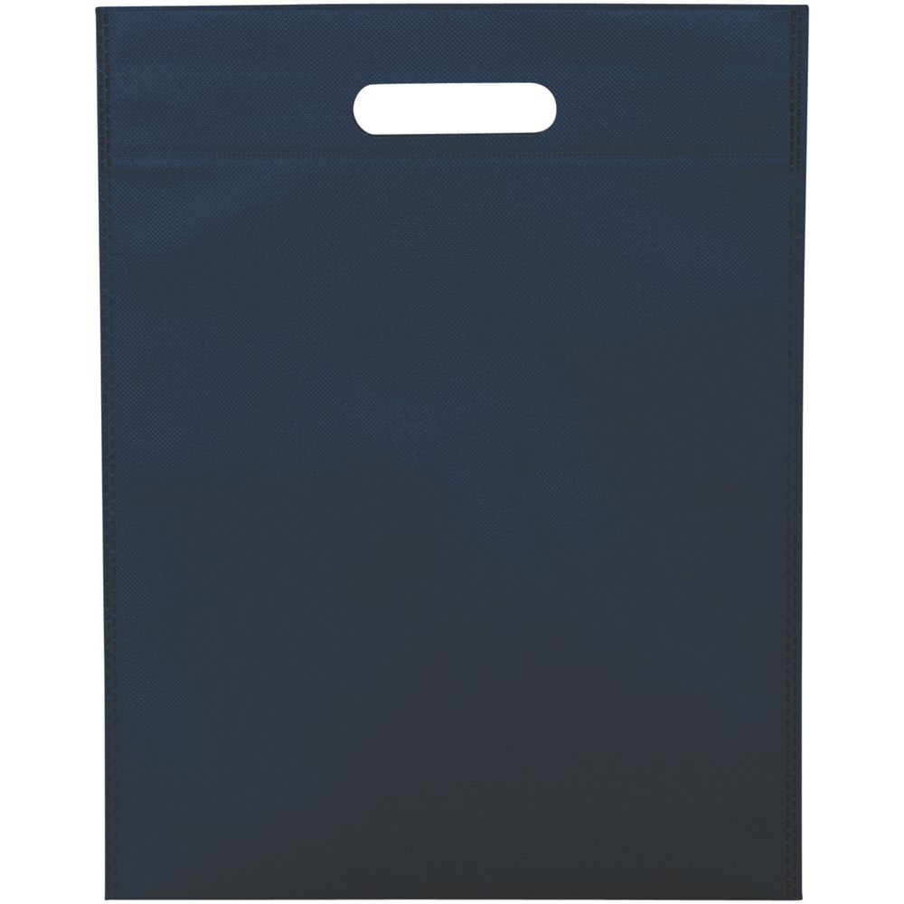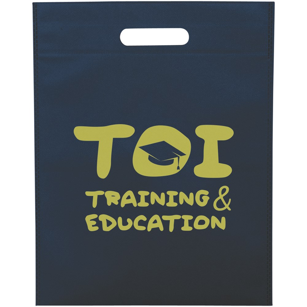 Offenes Hauptfach. Gestanzter Griff. Verschweißte Konstruktion mit schlankem Design. Wiederverwendbar und eine großartige Alternative zu Plastiktüten oder für Messen und Tagungen.