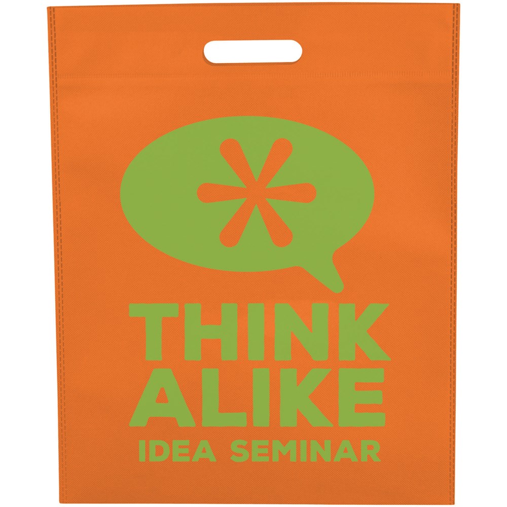 Offenes Hauptfach. Gestanzter Griff. Verschweißte Konstruktion mit schlankem Design. Wiederverwendbar und eine großartige Alternative zu Plastiktüten oder für Messen und Tagungen.