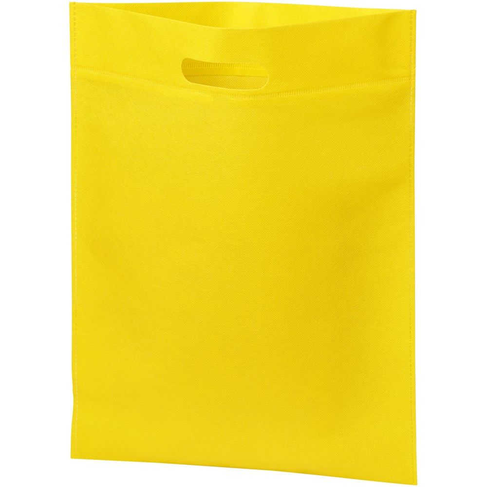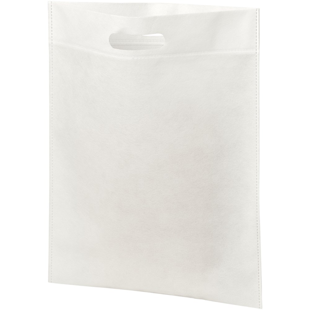 Offenes Hauptfach. Gestanzter Griff. Verschweißte Konstruktion mit schlankem Design. Wiederverwendbar und eine großartige Alternative zu Plastiktüten oder für Messen und Tagungen.