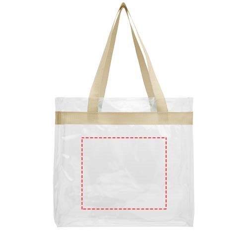 Diese durchsichtige Tasche ist perfekt für Fans auf dem Weg ins Stadion und die sichere Unterbringung von Dingen für Veranstaltungstage. Auch großartig für die Sicherheit bei der Arbeit und in der Schule geeignet. Offenes Hauptfach mit sportlicher Bandverzierung und zwei Henkeln. 27 cm lange Tragegriffe.
