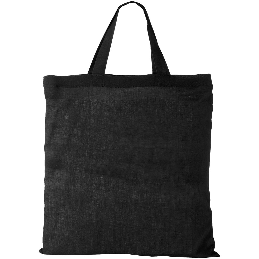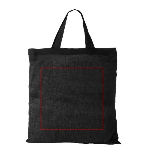 Tasche mit kurzen Henkeln und offenem Hauptfach. 19 cm lange Tragegriffe.