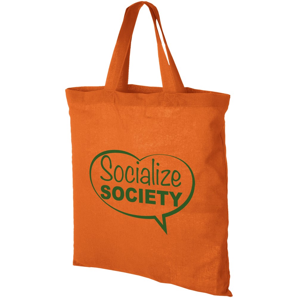 Tasche mit kurzen Henkeln und offenem Hauptfach. 19 cm lange Tragegriffe.