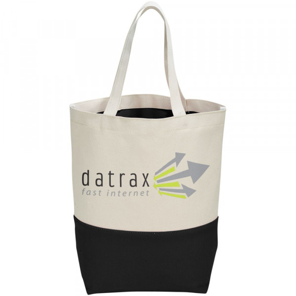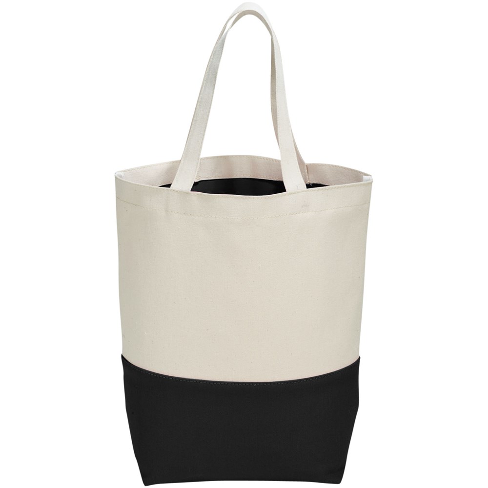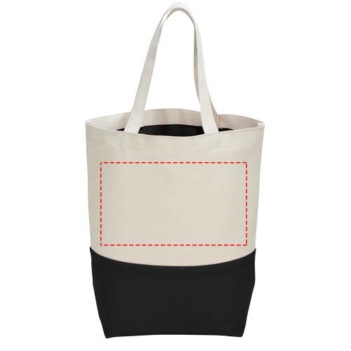 Diese 280 g/m² Baumwolltasche bietet attraktive farbliche Akzente entlang des Bodens. Das PVC Futter des offenen Hauptfaches ist ebenfalls farblich abgesetzt, sodass die Tasche leicht zu reinigen ist und perfekt geeignet für nasse Schwimmkleidung. Inkl. Bodenplatte für mehr Haltbarkeit, 18 cm Tragegriffhöhe.
