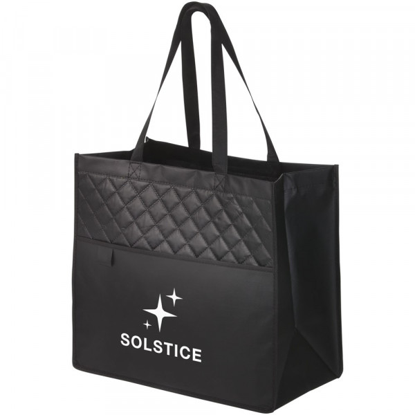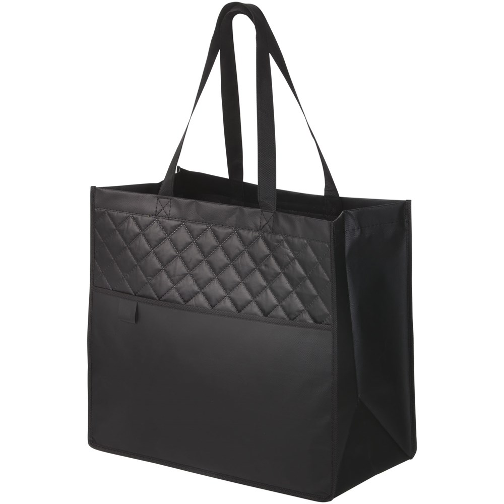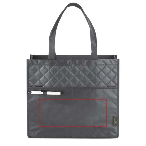 Modische Tragetasche mit Steppnähten. Die perfekte Alternative zu Plastiktüten. Offenes Hauptfach. Offene Einschubtasche auf der Vorderseite mit Stiftschlaufe. Beschichtetes Material ist wasserabweisend und leicht zu reinigen. Tragegriff-Länge 24,5 cm.