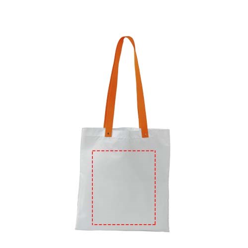Tragetasche geeignet zum Einkaufen oder als Messetasche. Mit bunten, langen gewebten Tragegriffen, Tragegriffhöhe 32,5 cm. Tragegriffe am Ende durch Metallknöpfe verstärkt.