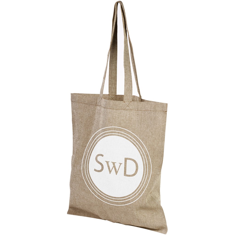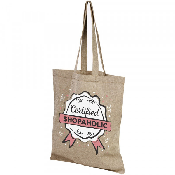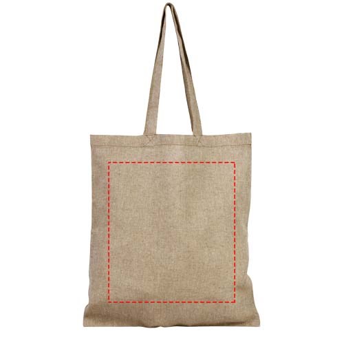 Tragetasche aus 150 g/m² recycelter Baumwolle und recyceltem Polyester mit einer Tragegriffhöhe von 31 cm. Recycelte Baumwolle wird aus Verbrauchsabfällen hergestellt, die während des Schneidevorgangs in Textilfabriken anfallen. Ähnliche Farben werden miteinander vermischt, sodass keine zusätzliche Färbung erforderlich ist. Diese Tasche kann für die Aufbewahrung auf kleinstem Raum problemlos zusammengefaltet werden. Der perfekte Begleiter für eine Vielzahl von Aktivitäten wie Lebensmitteleinkauf, Tagesausflüge oder Bastelprojekte. Aufgrund der Beschaffenheit von recycelter Baumwolle kann es zu sehr leichten Farbabweichungen kommen. Dieses Merkmal sorgt für ein authentischeres Aussehen.
