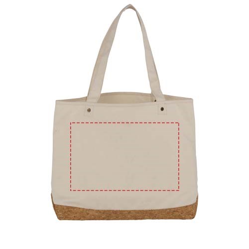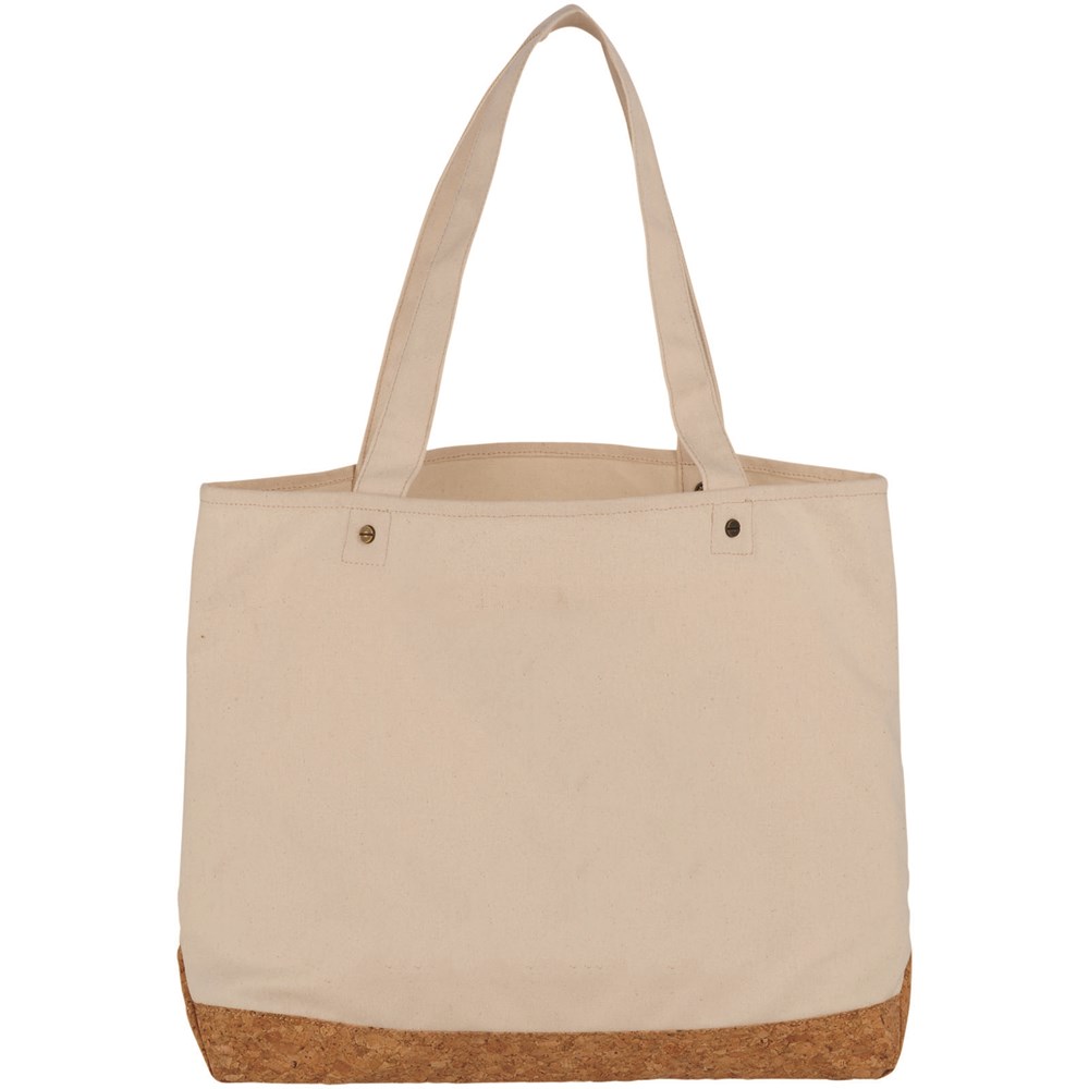 Die einzigartigen Korkakzente verleihen dieser Einkaufstasche einen modernen Touch. Offene Haupttasche. Nieten in Antik-Optik auf robustem 12oz-Stoff.