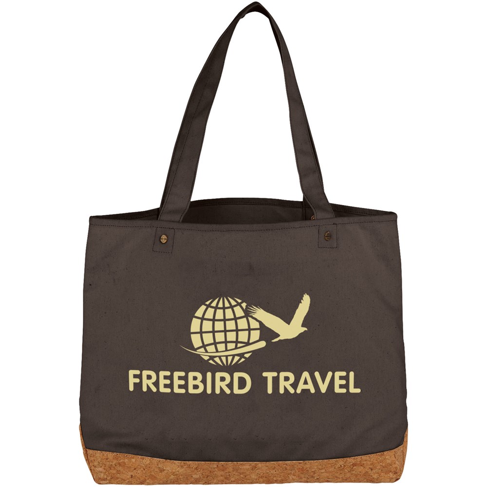 Die einzigartigen Korkakzente verleihen dieser Einkaufstasche einen modernen Touch. Offene Haupttasche. Nieten in Antik-Optik auf robustem 12oz-Stoff.