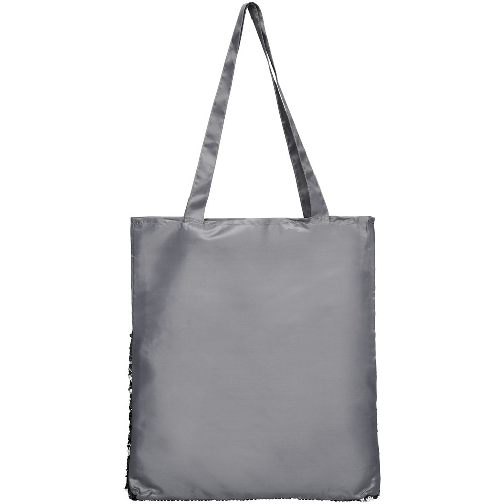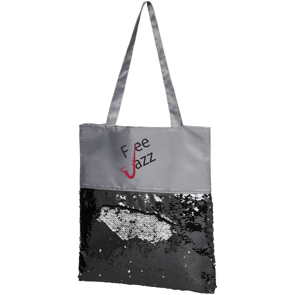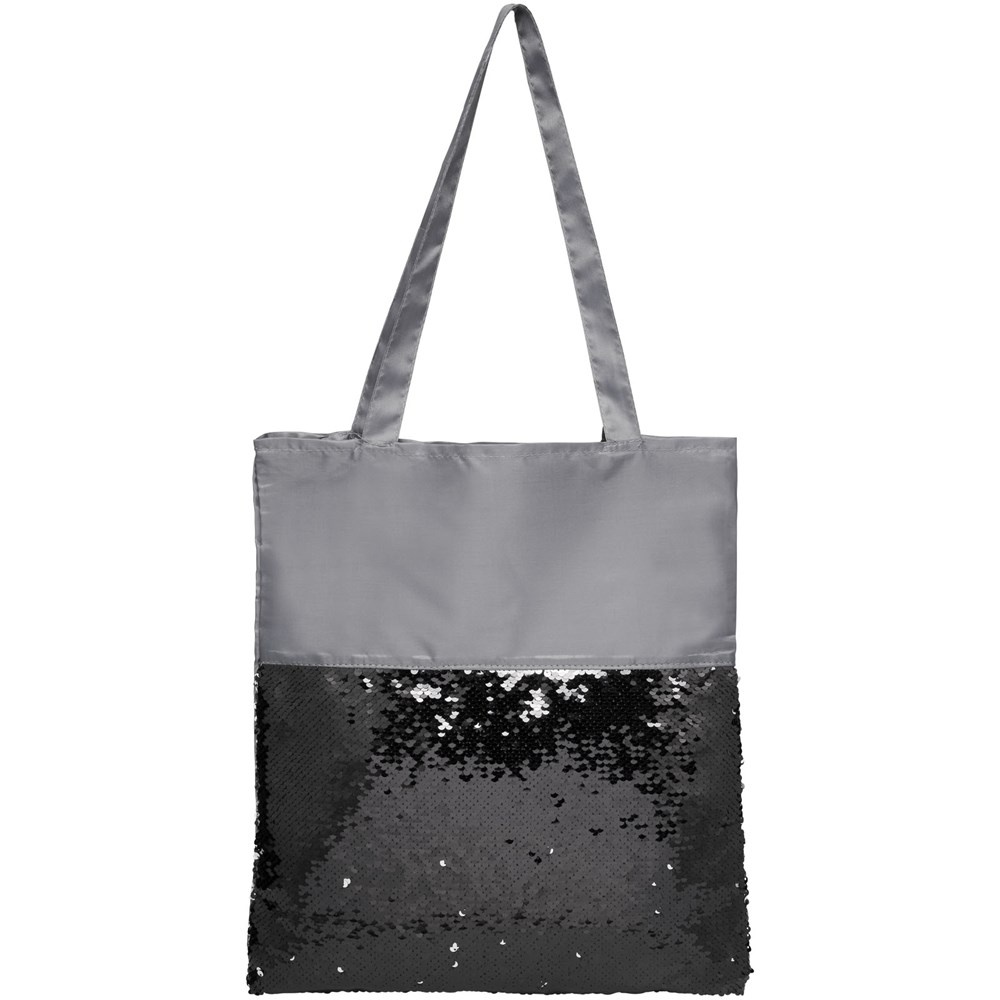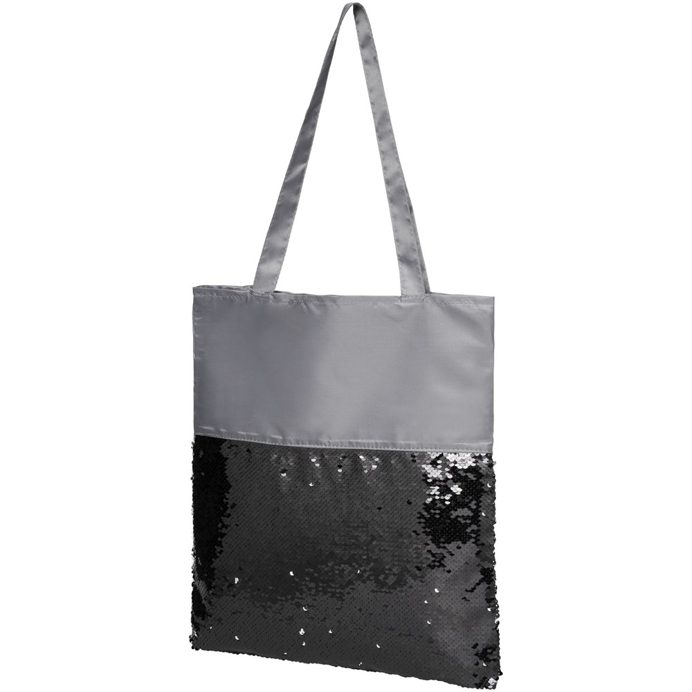 Auffällige, mit Pailletten verzierte Tragetasche, die umgedreht werden kann, um 2 Farben zu zeigen.