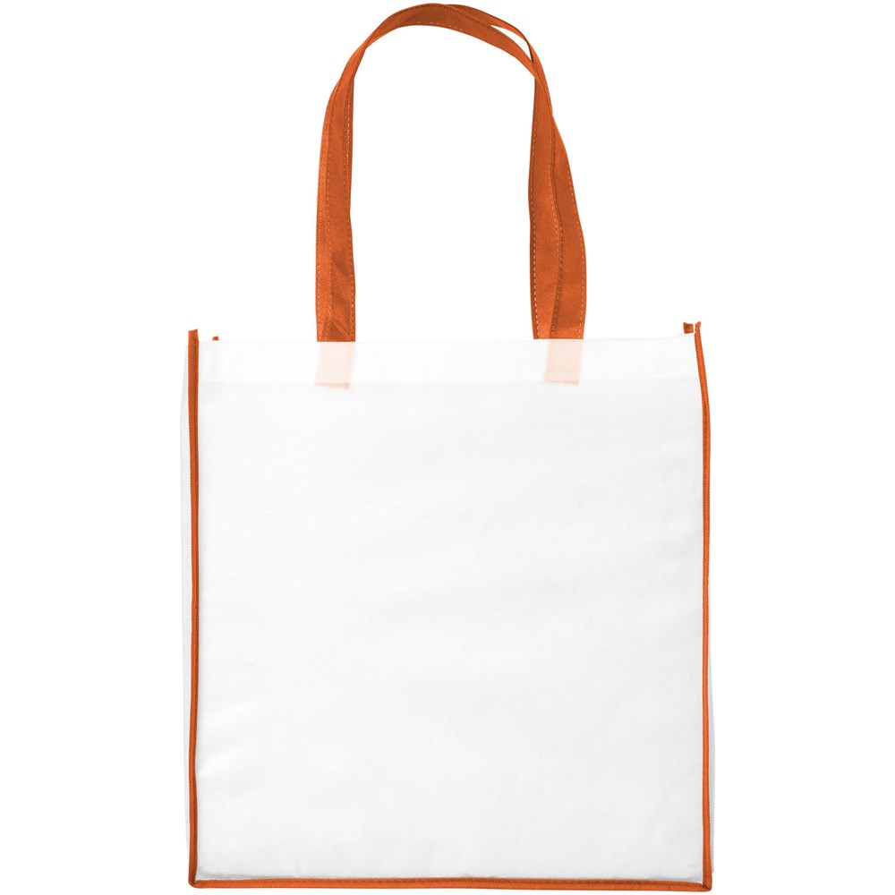 Eine Einkaufstasche aus PP-NonWovenmaterial mit farbigen Griffen und Kanten. Frisches und farbenfrohes Design. Große und praktische Version der Contrast Mini Einkaufstasche.