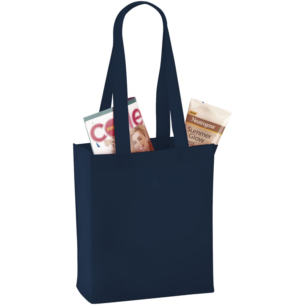 Offenes Hauptfach mit doppelten Griffen. Wiederverwendbar und eine großartige Alternative zu Plastiktüten. Die Grifflänge beträgt 29 cm.