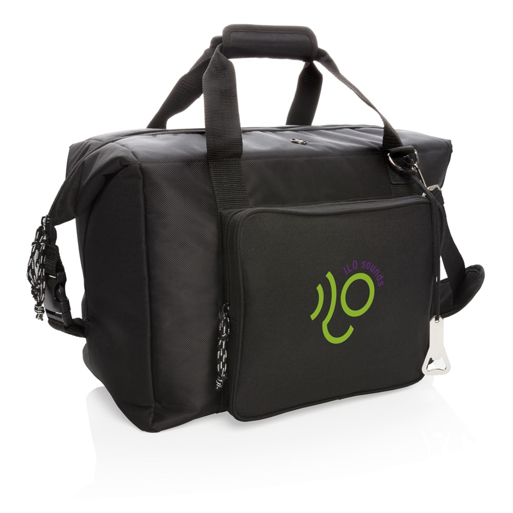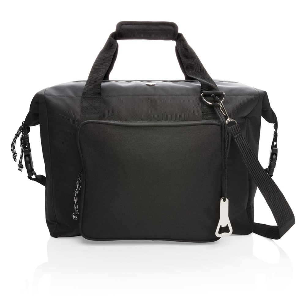Deluxe 1680D und 600D Polyester Kühltasche mit extra großem Hauptfach, das mit einem Reißverschluss verschlossen werden kann - ebenso wie die kleine Fronttasche. Riesiges Staufach von 40L - entspricht ca. 10 1,5L Flaschen oder 52 Dosen. Doppelt verstärkte Tragegriffe. Verstellbarer, abnehmbarer Schultergurt. Inkl. Flaschenöffner. PEVA Isolation.
