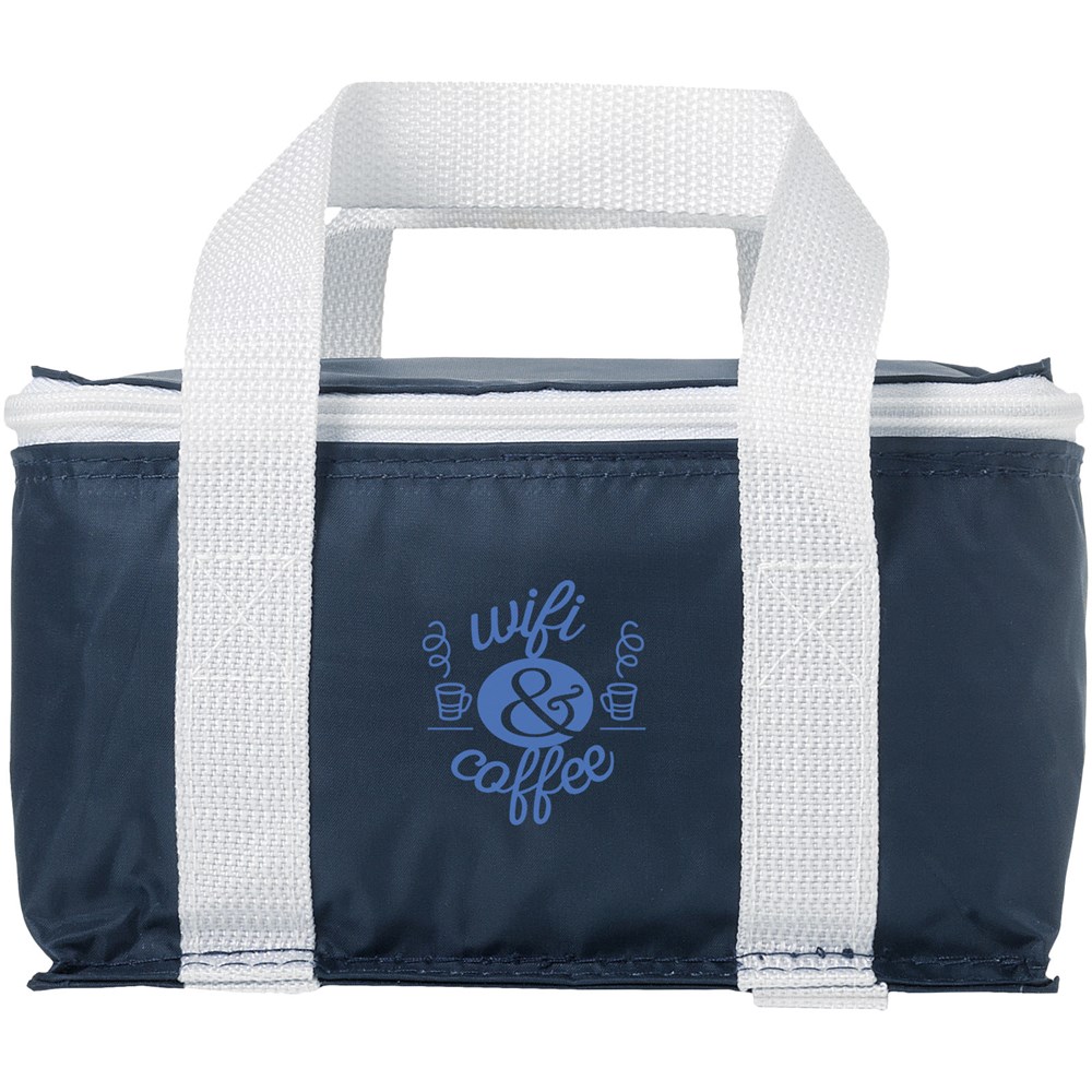 Kühltasche für 6 Dosen, doppeltem Tragegriff und Hauptfach mit Reißverschluss.